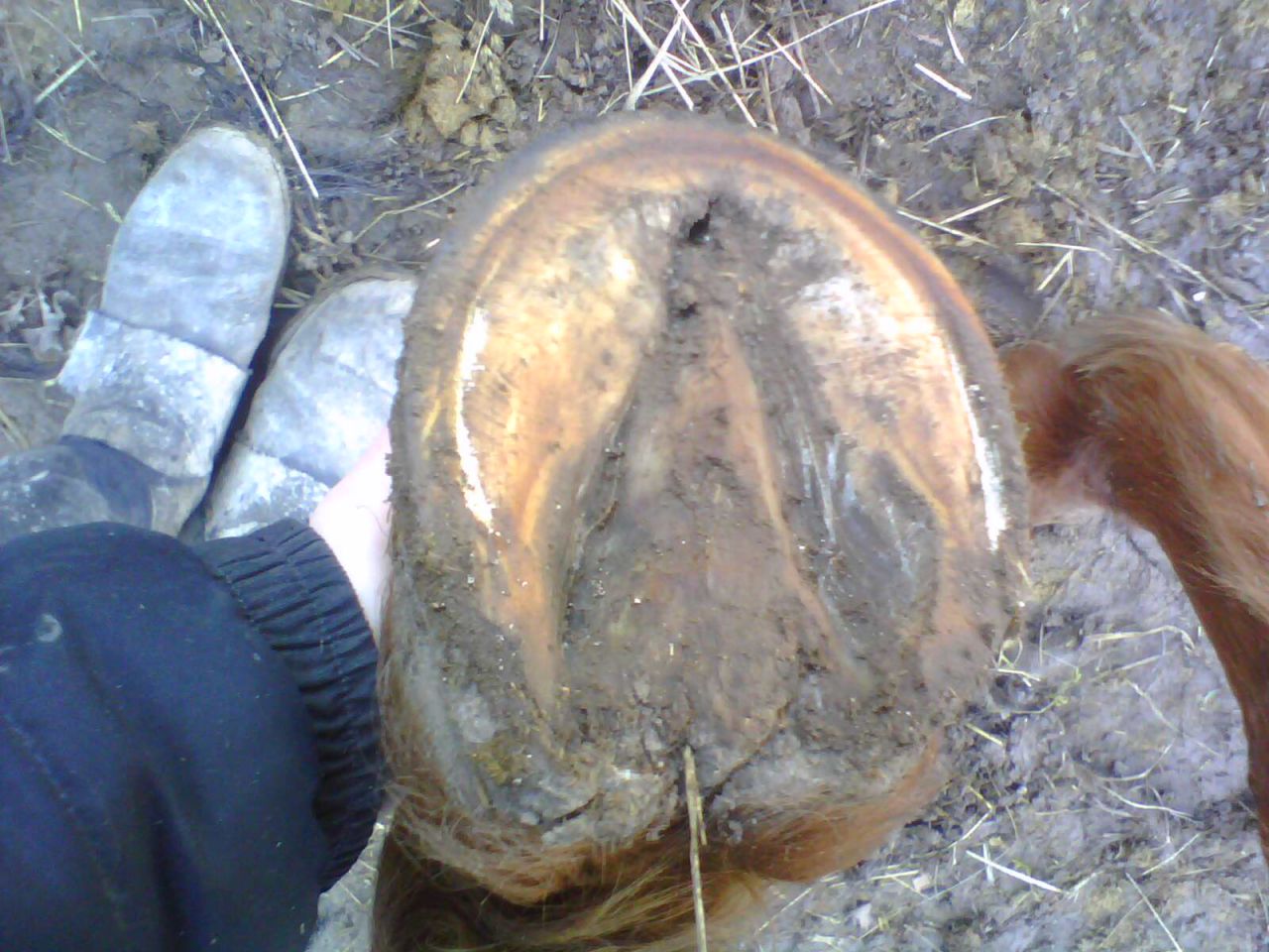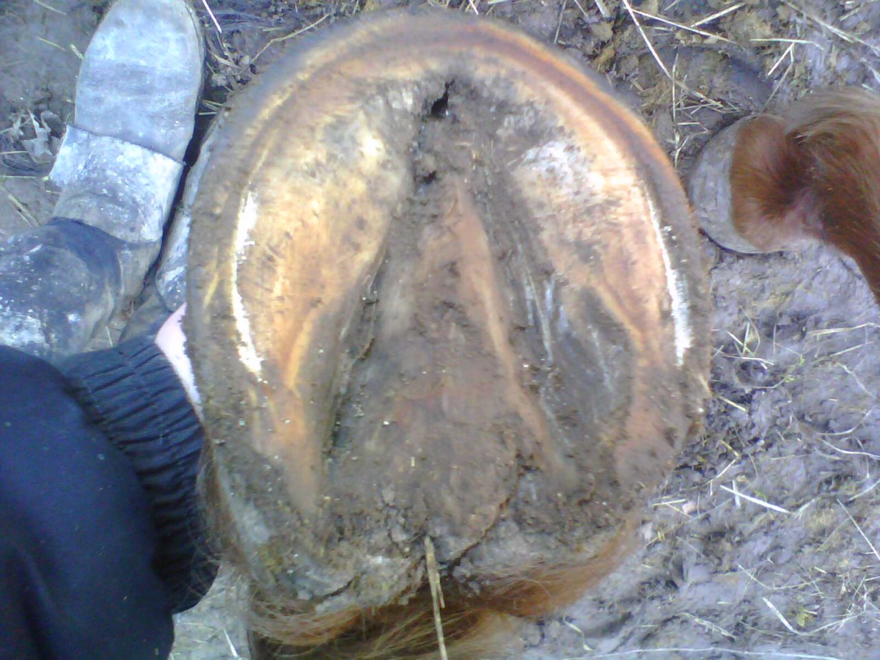 DéconnectéDire merci | à un cailloux qui s'est mis dedans peut être. Pour éviter que d'autres ne rentrent ou des saletés, tu peux mettre du coton après avoir mis du négérol ou autre spray bleu désinfectant. Si au fond c'est le la vrai corne, moi, je met des HE de tea tree pur. on peut aussi mettre du mastic keratex, c'est comme du joint Le mien a des trous sur la sole de chaque coté de la fourchette. Au pré pour qu'elle marche sauf si elle fait beaucoup l'andouille et sauf si le pré est humide ou glissant. Si au box, maintiens le box le plus propre possible. |