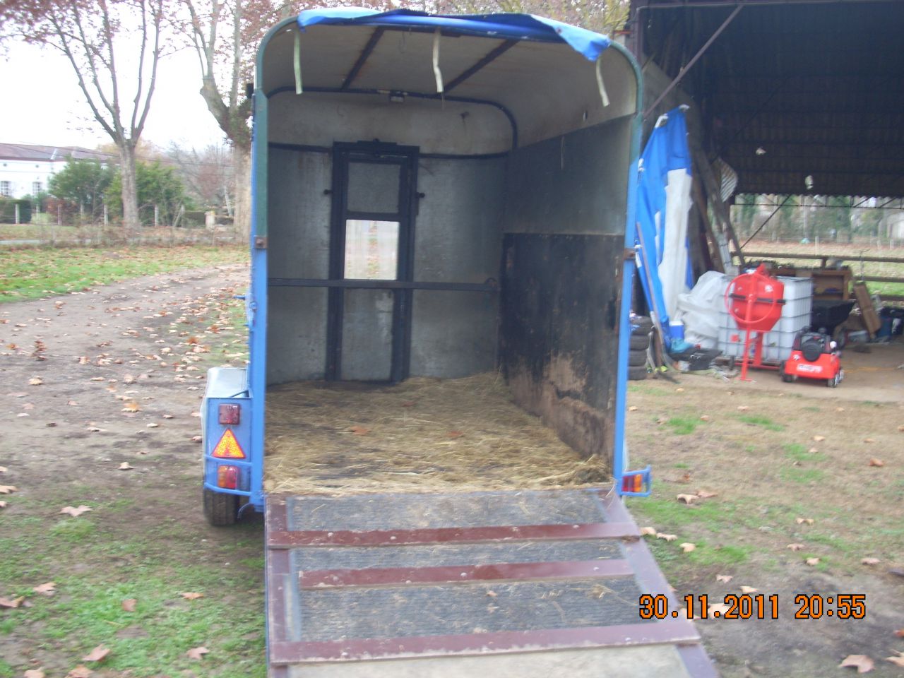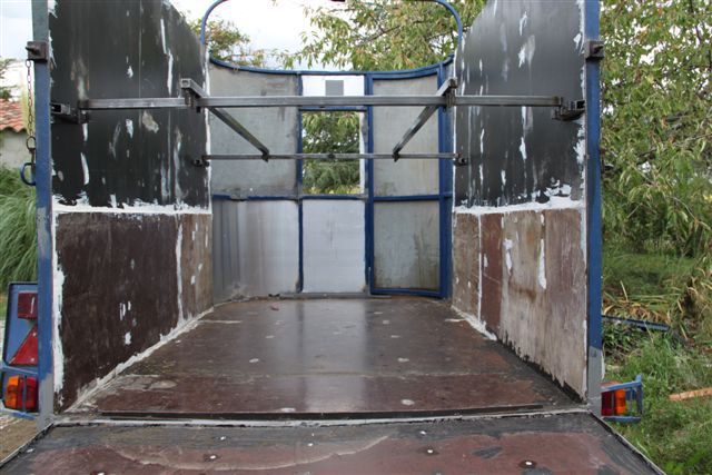 | Dire merci | pour l'histoire de l'ecoulement de l'urine, cette norme n'est appliquable que pour les transporteurs pro, et pas pour les transports de particuliers au titre de loisirs, on s'est renseigné!! pour les barres de separation, vous avez raison, effectivement, faut monter un cheval, ou deux , puis on pourra mettre la barre de queue et de separation, on avait pas pensé a l'ordre!!!! pour ma jument, a priori, pas de souci majeur, mais effectivement, ça pourrait etre moins pratique! je vais en parler a mon père!! pour le rembourrage, je vais aller voir ce qui est le plus epais et le plus dense au niveau mousse pour choisir entre les frites de chez decat ou la mousse de protection de plomberie... et recouvrir de skai, et renforcer au scotch bricolage argenté |