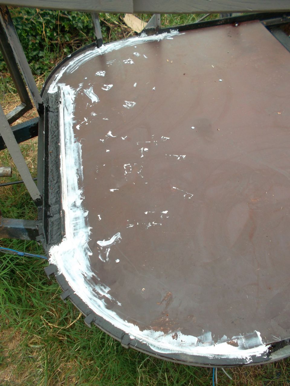 | Dire merci | suite : depose du toit resine pour reboucher les trous, nettoyer et repeindre ![]() remontage des cotés : alu neuf en bas, et plaques galva d'origine en haut, peinture des montants (anti rouille + peinture special exterieur) ![]() ![]() ![]() interieur mastiqué de partout, ok! (j'aime le mastic...) ![]() commence a être bien beau!! contreplaqué marine du pont posé ![]() toit résiné : plus de trous, puis poncé et passé au karsher, séchage ![]() |