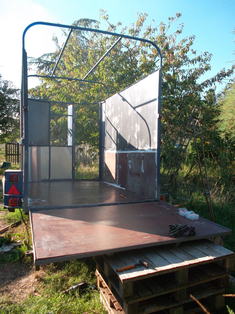 | Dire merci | A venir : - granulastic commandé est arrivé, il reste a le couler sol+ pont (en moins epais sur le pont) - verification du systeme d'eclairage (mais qui avait deja été controle, a priori pas de souci) - jantes a changer (certaines avaient été changées par un ancien proprio, mais pas de la bonne profondeur... ) en casse auto c'est des jantes/pneu pour utilitaires- verification des freins (et la : surprise... on verra : ça freine tres bien, mais bon...) et je crois que ça ira... j'ai appris a faire de l'ébarbeuse, je me suis essayée a la soudure, j'ai poncé, mastiqué, résiné, peint, gratté la rouille, manié la visseuse, la riveteuse... super chouette, mais pas pu etre la aussi souvent que je l'aurais voulu, c'est mon père qui a bossé dessus un max... moi j'ai aidé, comme j'ai pu et puis je suis en train de réfléchir a la personnalisation : je vais me créer des pochoirs/ des modèles pour le rendre unique! |