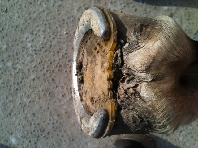Déconnecté | Quand je vois la différence d'ouverture des glomes entre postérieur et antérieur ![]() Au passage, vous pouvez remarquez ma belle ferrure à biseau sur les postérieurs, avant, mon ancien MF achetait des fers tout fait alors que celui ci travaille vraiment les deux branches du fer , on remarque bien la branche plus large |