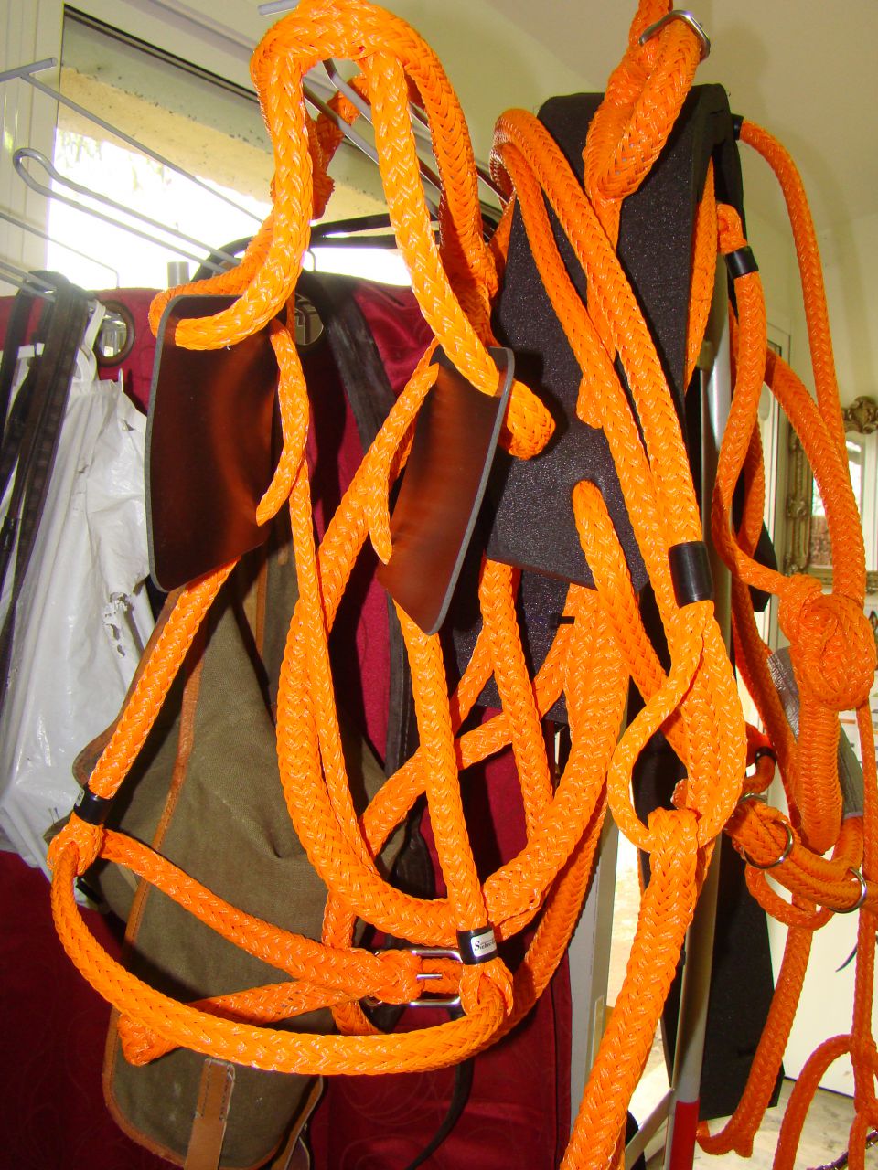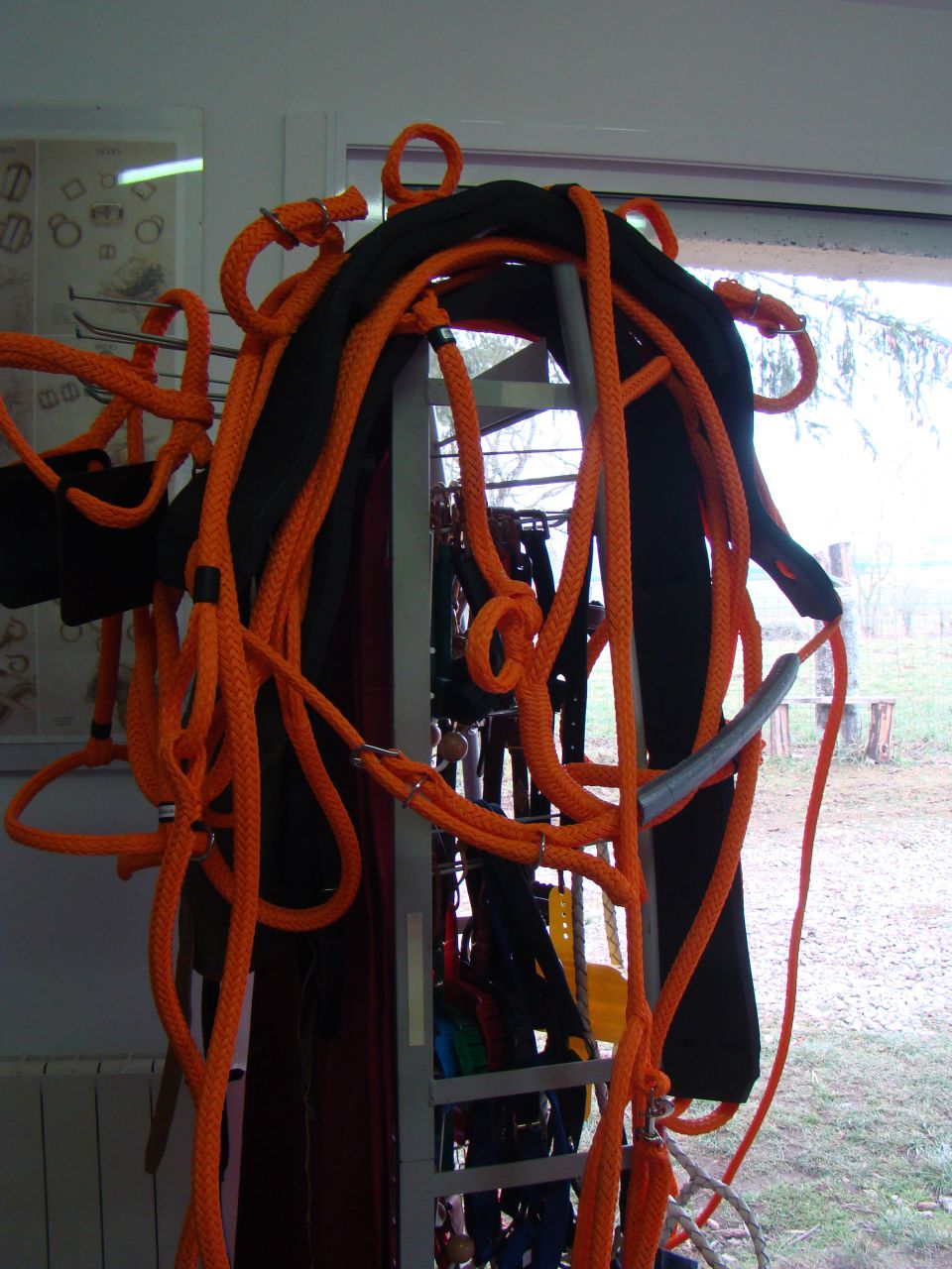 | Dire merci | Bon j'ai reçu le coli a l'instant Du coup je suis vachement moins convincue ![]() Je suis morte de rire depuis que jai ouvert alors c'est Orange mais bien orange !C'est pas très beau je vais apeller mon voisin qui a une horde de testeurs J'ai fais des photos du harnais... quand même ! et de la bride !!! attention les yeux ! ce soir je vous montre tout ça |
