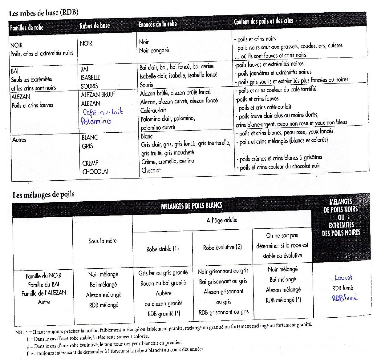 | Dire merci | Vanish c est juste que cette nomenclature s appuie sur du visuel et non sur du génétique. En la suivant, on ne peut pas comprendre la logique de transmission des couleurs en élevage. Mais c est bien la nomenclature de HN. Tant qu ils ne se mettent pas a la page on va devoir continuer a utiliser en parallèle la nomenclature en Anglais pour designer les vraies couleurs de nos chevaux |
