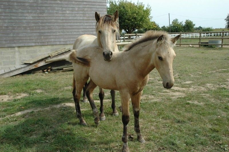 | Dire merci | sur un poulain de l'année c'est pas très fiable, non ? La couleur peut encore changer. Moi mon gris il a les crins tout noirs à 2 mois |
