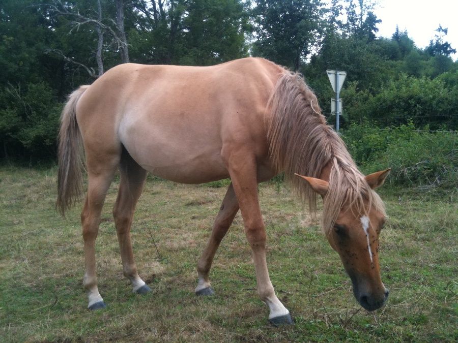 | Dire merci | Ben là on voit pas trop mais elle a des crins mélangés dans la crinière et elle est bien clair quand même. Il me semble qu'il y a les test génétiques à l'appui et en tout cas il y a ses poulains. |