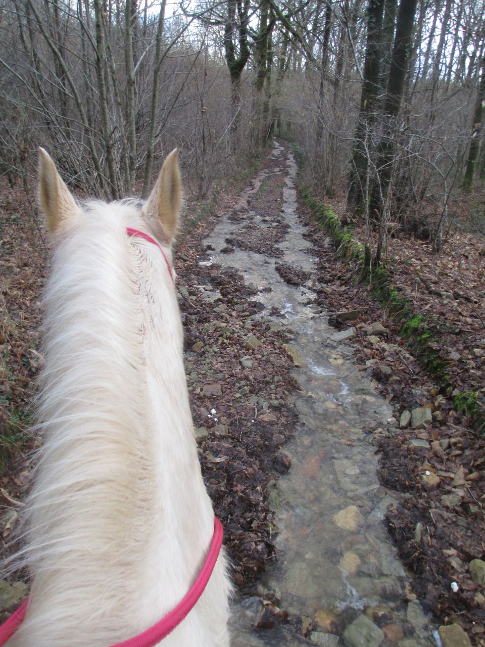 | Dire merci | oui le boulot avance vraiment bien avec Cookie, c'est une jument facile qui reste concentrée Je prend un cours d'1h par mois avec David Doucinot et je prend aussi un cours de 3h avec Jp Fradet mais cette fois ci avec Uline Comme je suis au chômage en ce moment j'en profite aujourd'hui, il pleut pas cette après midi alors je sort Voila l'etat des chemins ! ![]() |
