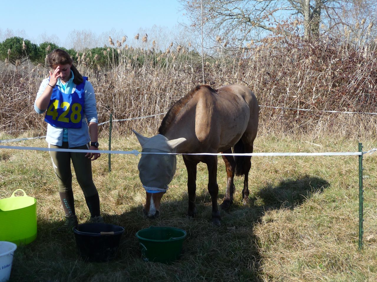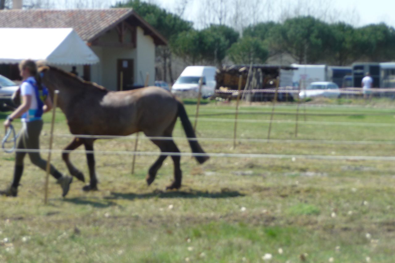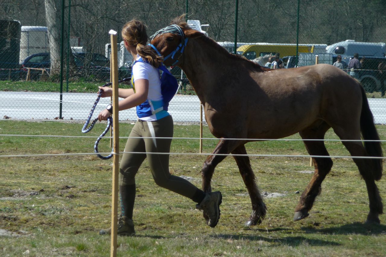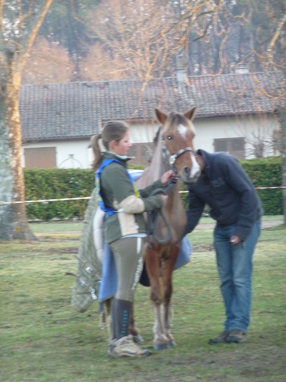 | Dire merci | Le samedi 24 mars j'étais en course JC avec Sépia pour sa première course On arrive là bas, la jument est assez stressée mais ça va, elle se controle. On passe au controle, la jument est à 52bpm et A aux allures. Je prend le départ avec 2 autres cavalières qui montent leurs chevaux une sur 20, l'autre sur 40. La ponette est super maniable, bien placée, le dos qui tendu, la tete en bas, sur son mors. Au trot, elle déplie bien ses allures sans pb pour suivre les chevaux et au galop, elle reste dans des allures petites, bien cadencées et en équilibre. Le meilleur galop qu'elle m'ai fait !! A l'arrivée je perd au moins 5 min car le pont sur lequel on devait passer glissait et on devait passer dans un gué et pour y rentrer sauter un contre bas donc la jument ne voulait pas et j'étais à pied les pieds dans l'eau J'ai eu le droit de passer sur le pont à pied heuresement. A l'arrivée, la jument est toujours fraiche et elle récupère bien. Il y a juste plein de moucherons qui la gène et comme je ne peux rien pour ça je la laisse brouter à l'ombre en attendant le controle. On passe au controle à 52 bpm et allure A. Après la jument à bien manger sa ration et a brouté attachée au van. Elle s'excitait en henissant de temps en temps, mais pour une jument sur les nerfs comme elle l'était avant, c'est vraiment bien. Je pense qu'elle a un peu d'avenir !! |