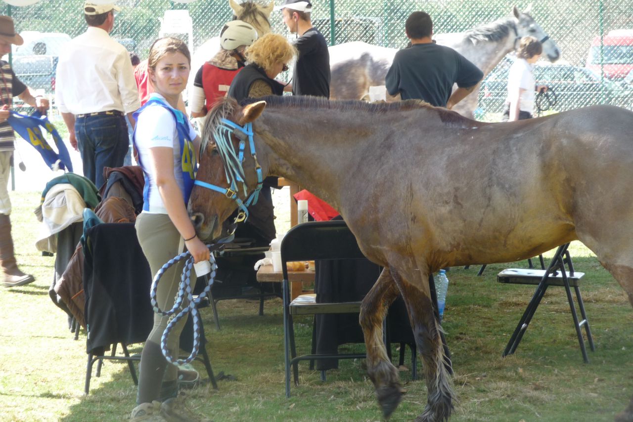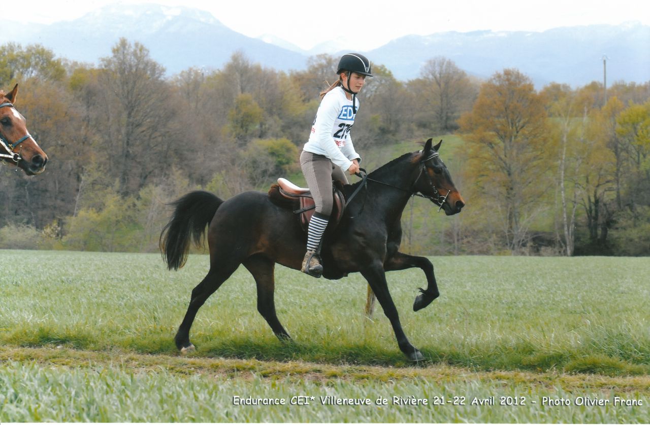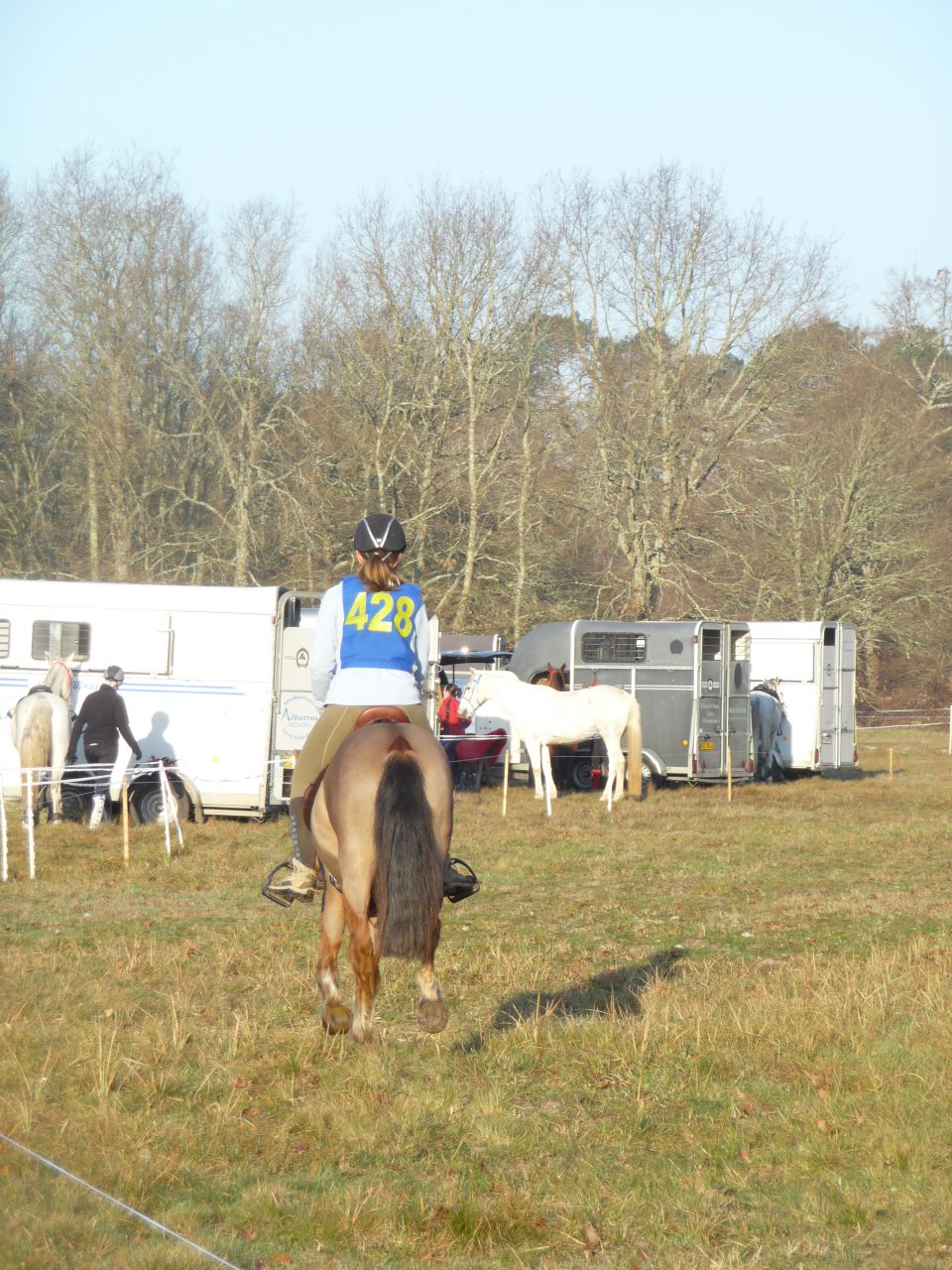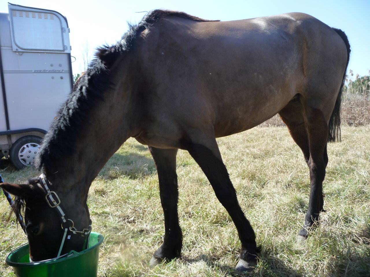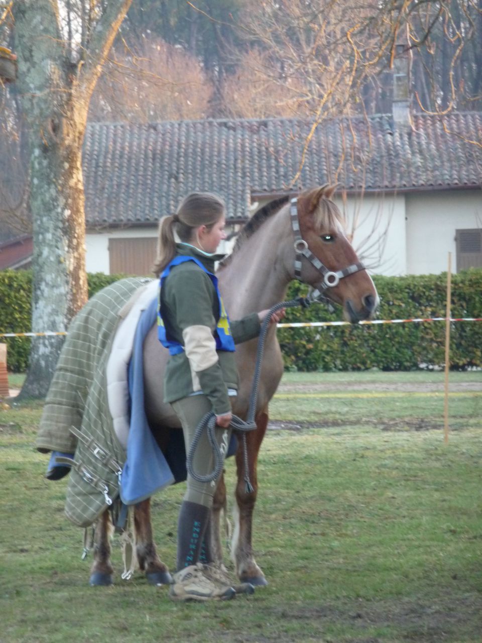 | Dire merci | Le samedi 24 mars j'étais en course JC avec Sépia pour sa première course On arrive là bas, la jument est assez stressée mais ça va, elle se controle. On passe au controle, la jument est à 52bpm et A aux allures. Je prend le départ avec 2 autres cavalières qui montent leurs chevaux une sur 20, l'autre sur 40. La ponette est super maniable, bien placée, le dos qui tendu, la tete en bas, sur son mors. Au trot, elle déplie bien ses allures sans pb pour suivre les chevaux et au galop, elle reste dans des allures petites, bien cadencées et en équilibre. Le meilleur galop qu'elle m'ai fait !! A l'arrivée je perd au moins 5 min car le pont sur lequel on devait passer glissait et on devait passer dans un gué et pour y rentrer sauter un contre bas donc la jument ne voulait pas et j'étais à pied les pieds dans l'eau J'ai eu le droit de passer sur le pont à pied heuresement. A l'arrivée, la jument est toujours fraiche et elle récupère bien. Il y a juste plein de moucherons qui la gène et comme je ne peux rien pour ça je la laisse brouter à l'ombre en attendant le controle. On passe au controle à 52 bpm et allure A. Après la jument à bien manger sa ration et a brouté attachée au van. Elle s'excitait en henissant de temps en temps, mais pour une jument sur les nerfs comme elle l'était avant, c'est vraiment bien. Je pense qu'elle a un peu d'avenir !! |