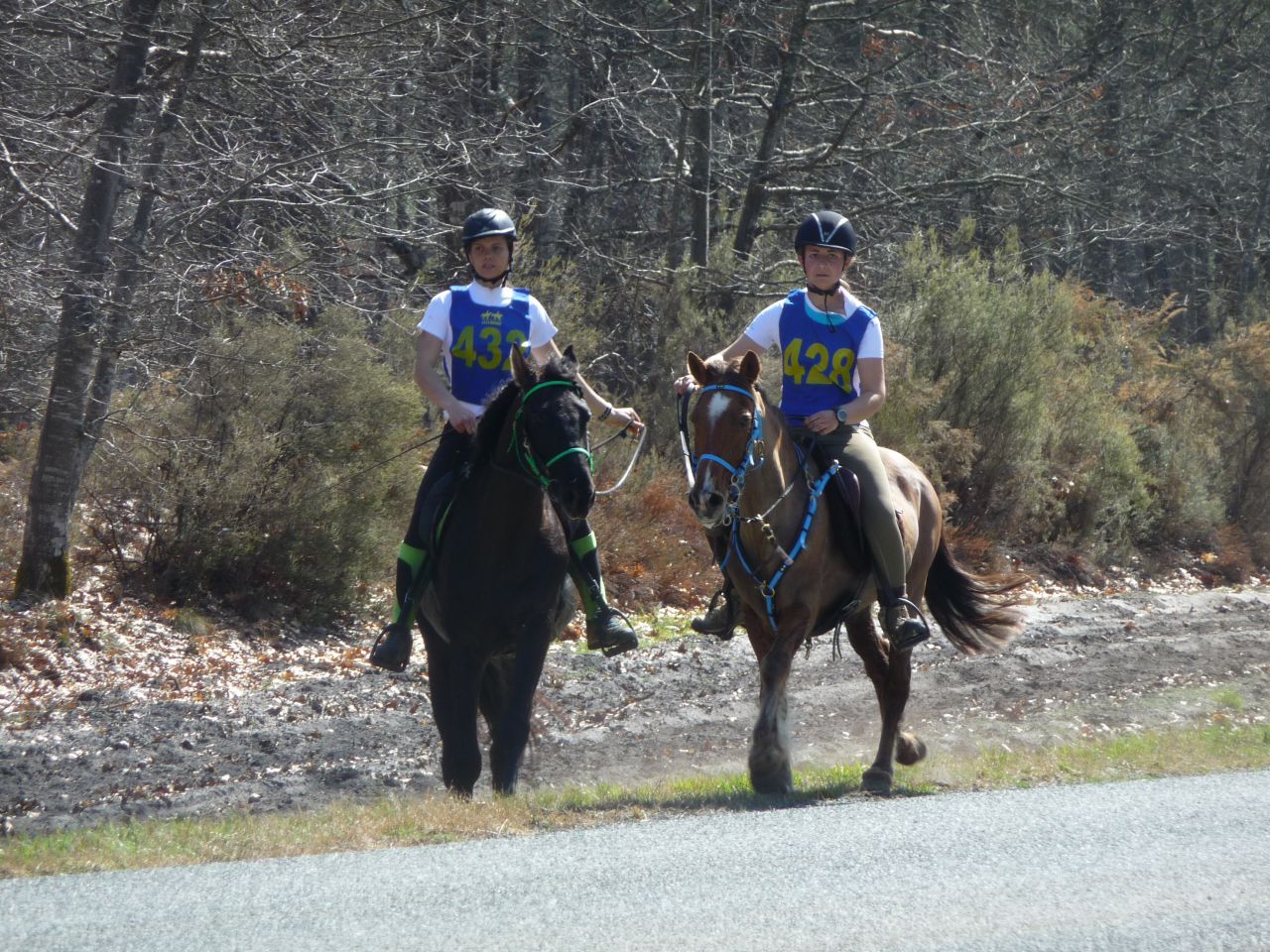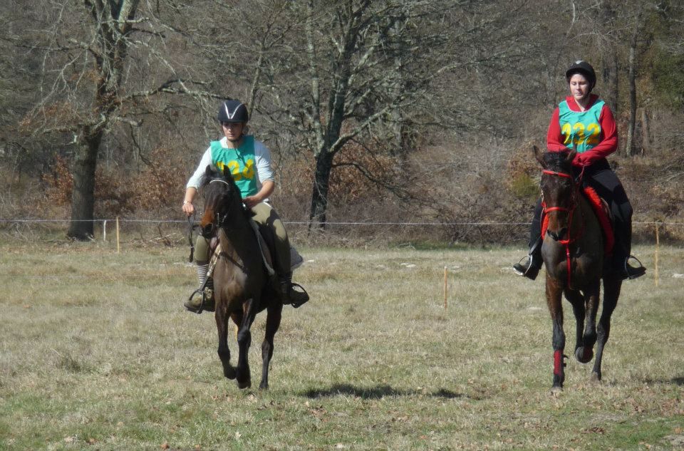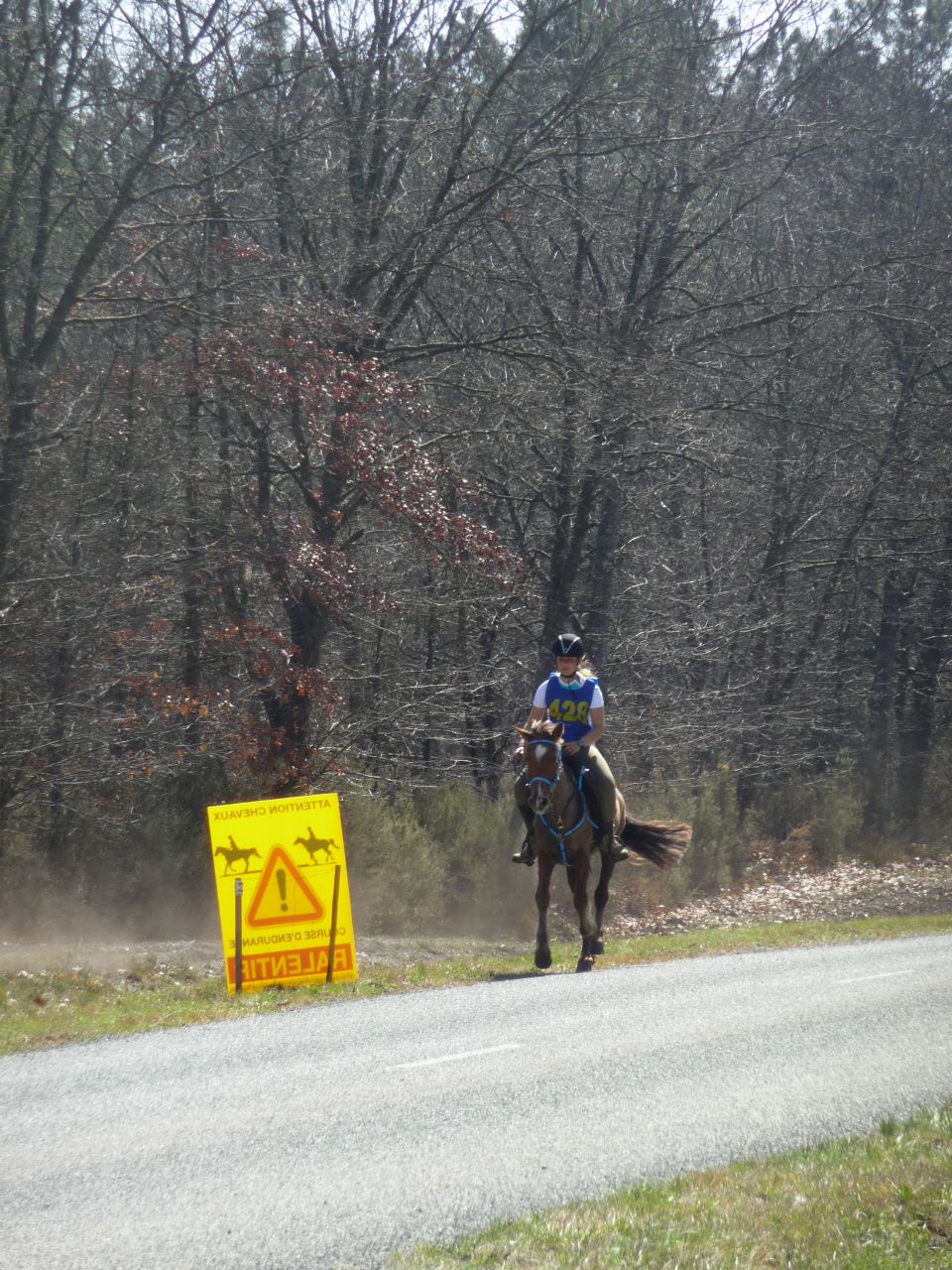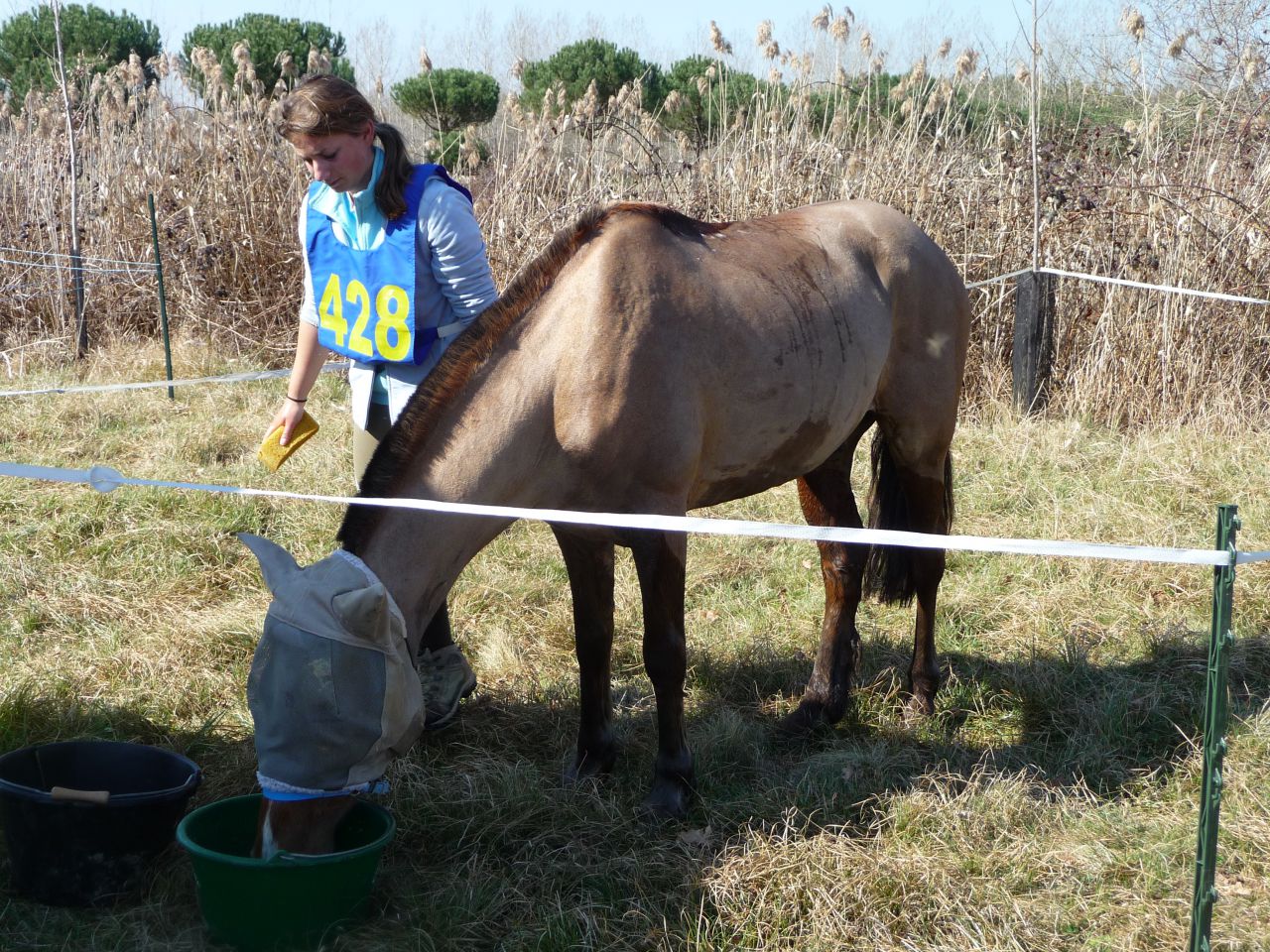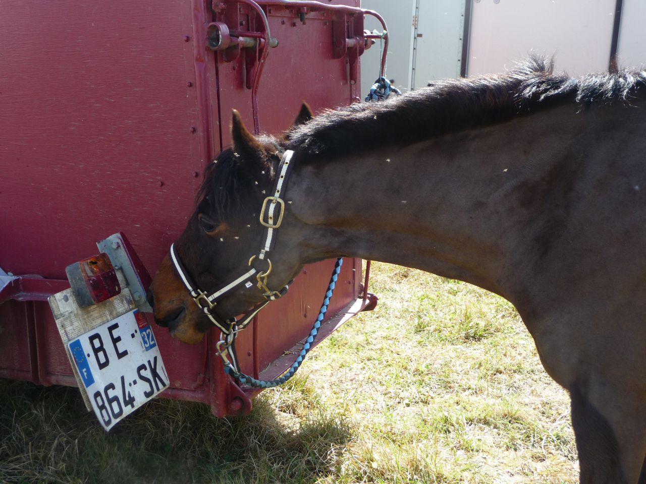 | Dire merci | Le samedi 24 mars j'étais en course JC avec Sépia pour sa première course On arrive là bas, la jument est assez stressée mais ça va, elle se controle. On passe au controle, la jument est à 52bpm et A aux allures. Je prend le départ avec 2 autres cavalières qui montent leurs chevaux une sur 20, l'autre sur 40. La ponette est super maniable, bien placée, le dos qui tendu, la tete en bas, sur son mors. Au trot, elle déplie bien ses allures sans pb pour suivre les chevaux et au galop, elle reste dans des allures petites, bien cadencées et en équilibre. Le meilleur galop qu'elle m'ai fait !! A l'arrivée je perd au moins 5 min car le pont sur lequel on devait passer glissait et on devait passer dans un gué et pour y rentrer sauter un contre bas donc la jument ne voulait pas et j'étais à pied les pieds dans l'eau J'ai eu le droit de passer sur le pont à pied heuresement. A l'arrivée, la jument est toujours fraiche et elle récupère bien. Il y a juste plein de moucherons qui la gène et comme je ne peux rien pour ça je la laisse brouter à l'ombre en attendant le controle. On passe au controle à 52 bpm et allure A. Après la jument à bien manger sa ration et a brouté attachée au van. Elle s'excitait en henissant de temps en temps, mais pour une jument sur les nerfs comme elle l'était avant, c'est vraiment bien. Je pense qu'elle a un peu d'avenir !! |