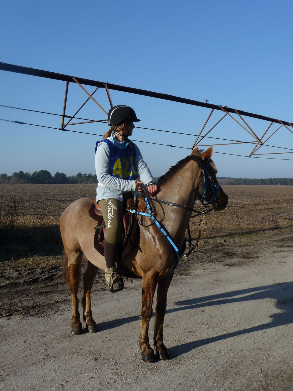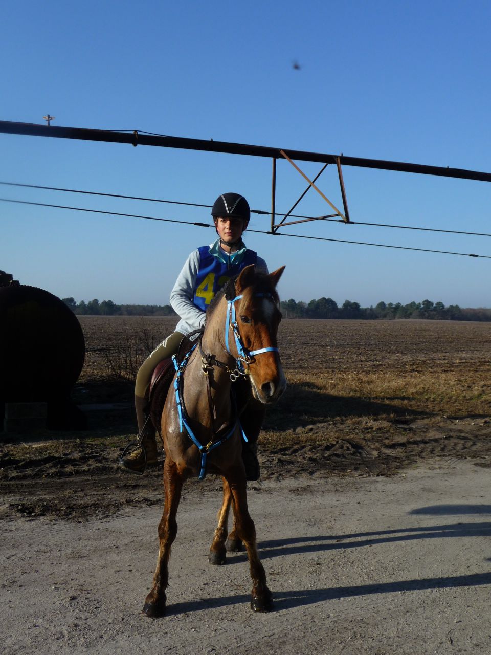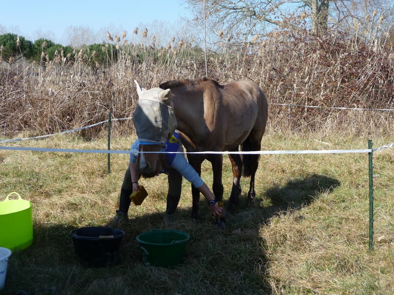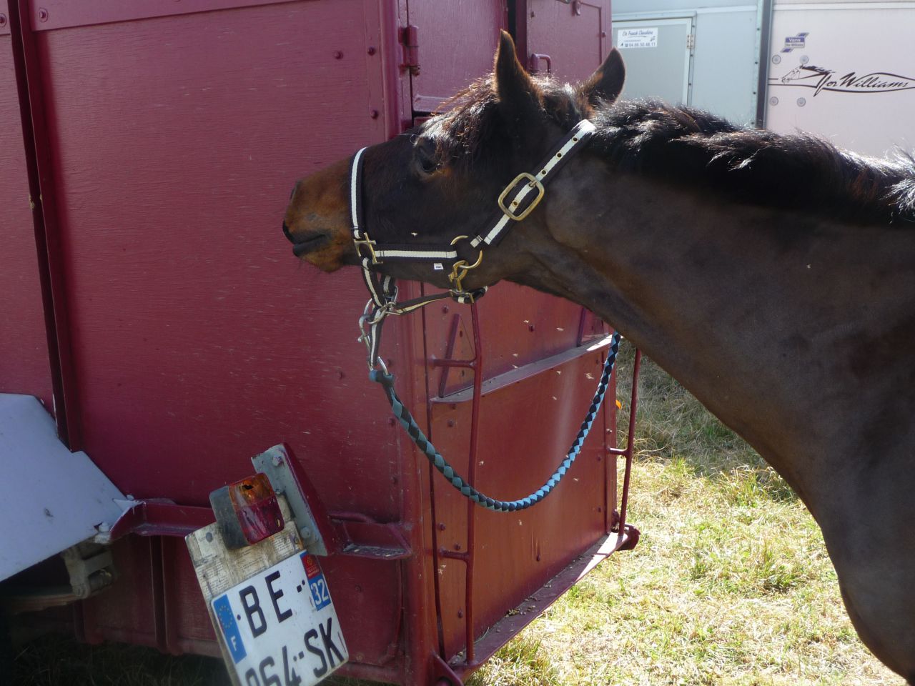 | Dire merci | Le samedi 24 mars j'étais en course JC avec Sépia pour sa première course On arrive là bas, la jument est assez stressée mais ça va, elle se controle. On passe au controle, la jument est à 52bpm et A aux allures. Je prend le départ avec 2 autres cavalières qui montent leurs chevaux une sur 20, l'autre sur 40. La ponette est super maniable, bien placée, le dos qui tendu, la tete en bas, sur son mors. Au trot, elle déplie bien ses allures sans pb pour suivre les chevaux et au galop, elle reste dans des allures petites, bien cadencées et en équilibre. Le meilleur galop qu'elle m'ai fait !! A l'arrivée je perd au moins 5 min car le pont sur lequel on devait passer glissait et on devait passer dans un gué et pour y rentrer sauter un contre bas donc la jument ne voulait pas et j'étais à pied les pieds dans l'eau J'ai eu le droit de passer sur le pont à pied heuresement. A l'arrivée, la jument est toujours fraiche et elle récupère bien. Il y a juste plein de moucherons qui la gène et comme je ne peux rien pour ça je la laisse brouter à l'ombre en attendant le controle. On passe au controle à 52 bpm et allure A. Après la jument à bien manger sa ration et a brouté attachée au van. Elle s'excitait en henissant de temps en temps, mais pour une jument sur les nerfs comme elle l'était avant, c'est vraiment bien. Je pense qu'elle a un peu d'avenir !! |
