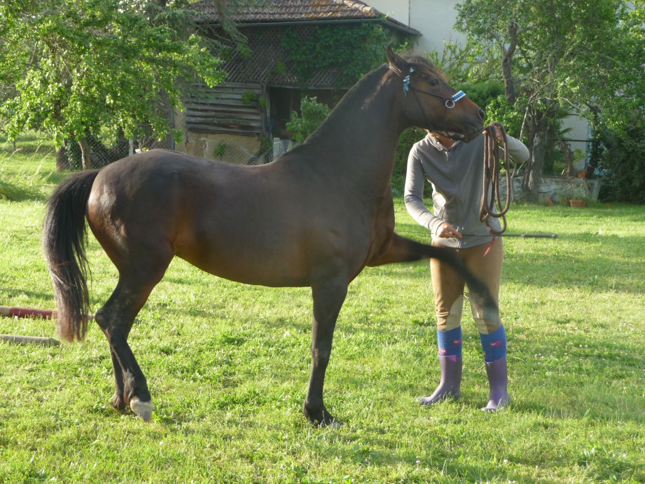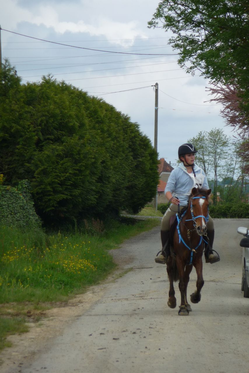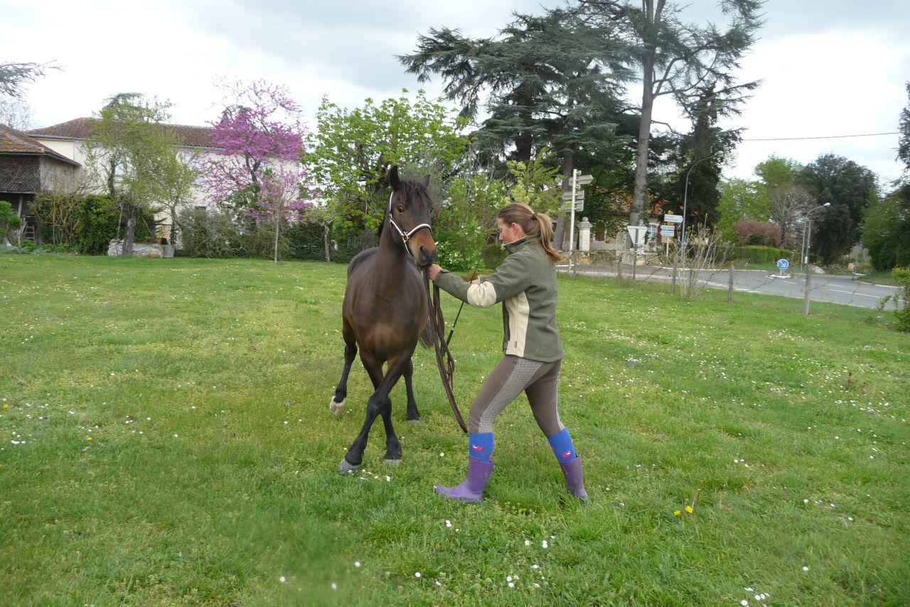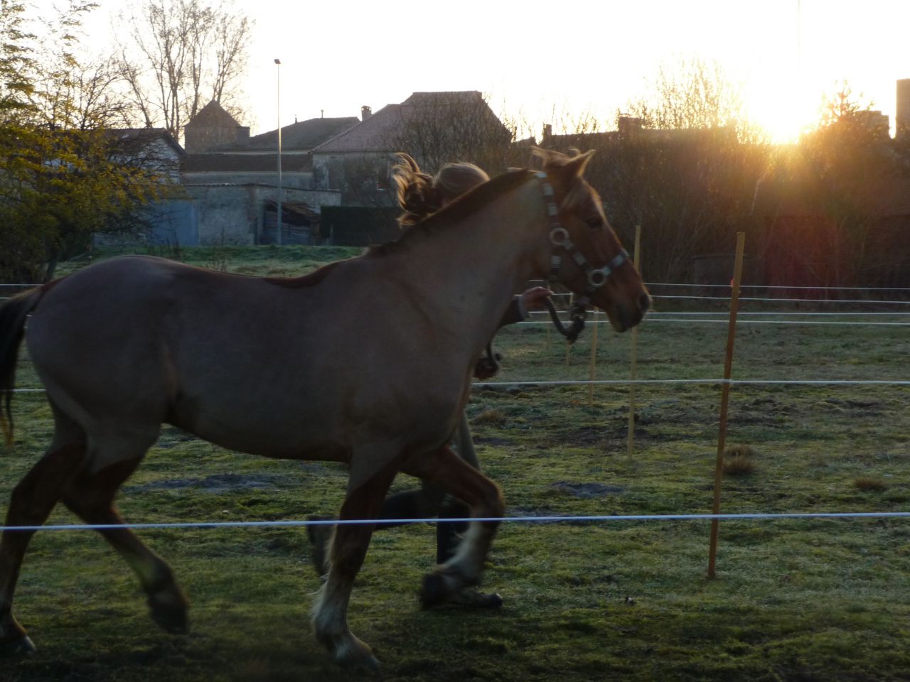 | Dire merci | avril pour expliquer un peu ces images, la ponette a bien progressé à pied, elle maitrise les deplacement latéraux, commence les déplacement latéraux par aspiration. Elle recule par vibration du licol que je sois devant, sur le coté ou derrière. Elle fait la jambette. Elle bouge épaules et hanches. Elle a compris le baisse la tete au pas. ![]() ![]() ![]() |