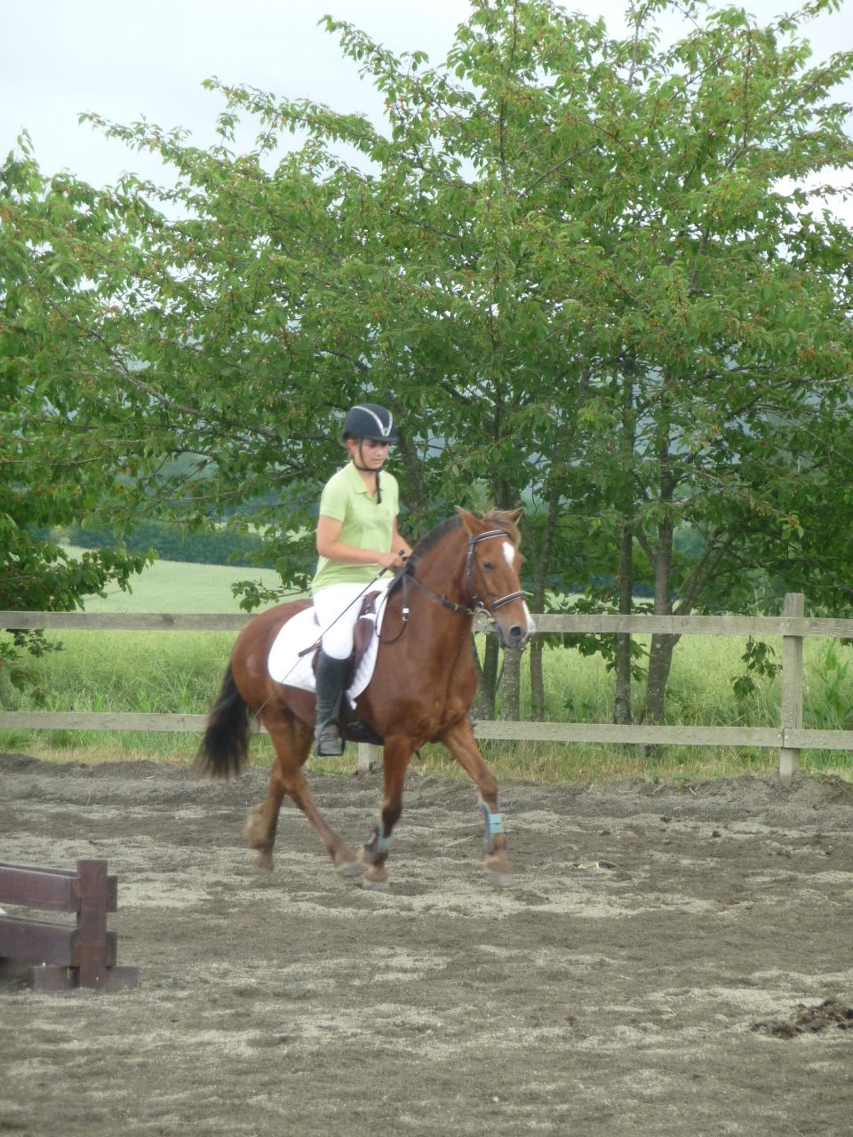 | Dire merci | des nouvelles, alors vendredi de la semaine dernière, j'ai été prendre une leçon à la nouvelle monitrice qui loue l'ancien centre equestre de à coté de chez moi. La monitrice prend des cours chez mon mono donc pas trop de changement de méthode. On a fait des choses très simple et ça n'a pas fait de mal au loulou, il était parfait on a travaillé l'incurvation au trot sur des 8 de chiffres, il était ien placé, en équilibre, sans tirer, et comme il était parfait, elle m'a rajouté des allongement sur la diagonale qu'il m'a fait parfaitement (pour son niveau hein on est d'accord ! ). Après on a travaillé les déplacement latéraux au pas et au trot, puis déplacement latéral au trot puis départ au galop, il était tout aussi parfait |