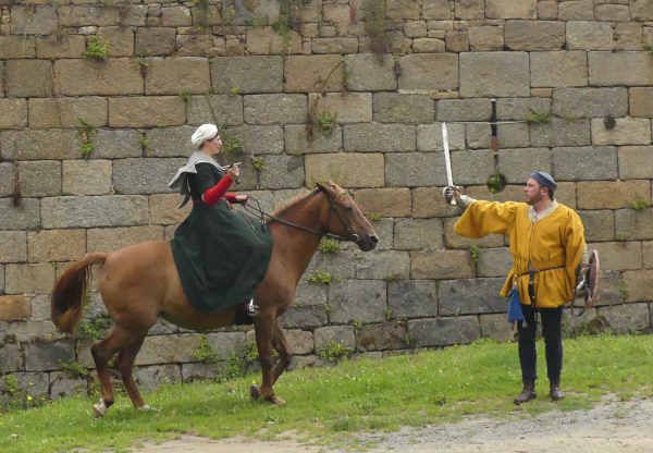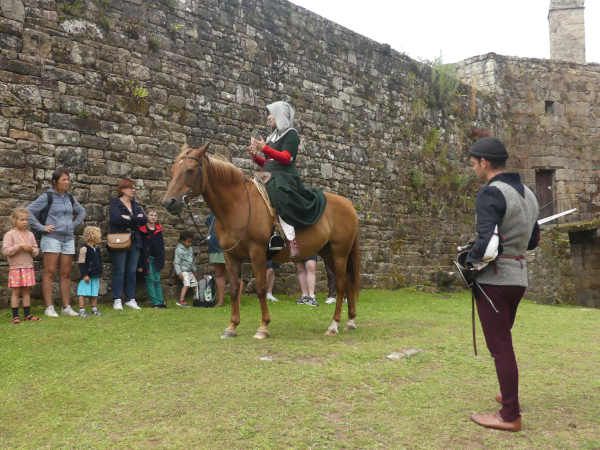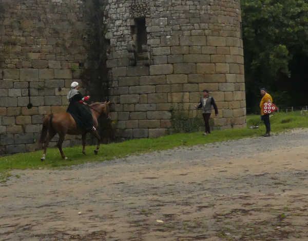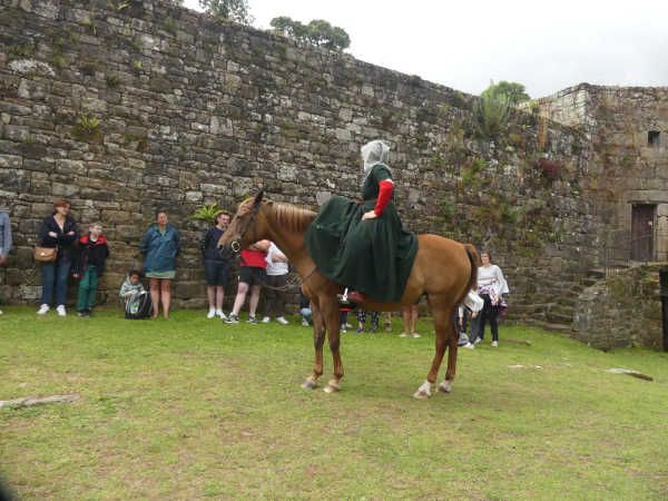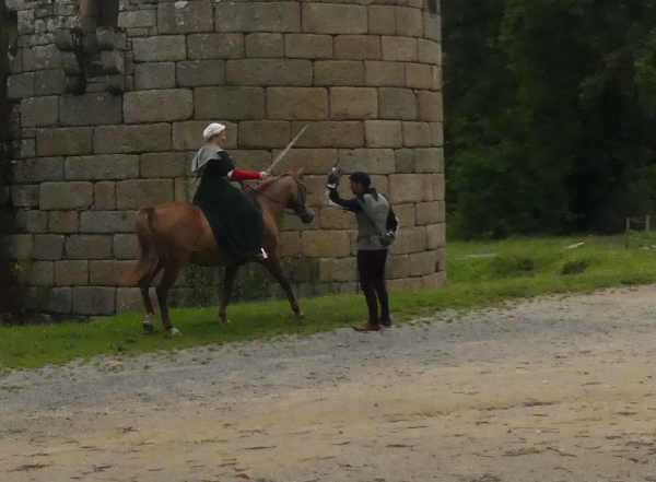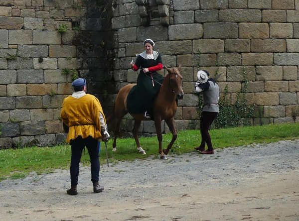 | Dire merci | Ben le sous-vêtement médiéval, c'est la chainse, la sous-robe blanche en lin que j'ai en dessous, et les bas qui montent aux genoux. Alors oui je les ai, mais j'ai aussi des sous-vêtements modernes en dessous (sauf les chaussettes )A chaque fois je me dis que je devrais mettre un genre de leggin en dessous pour monter, je le fais jamais et le contact direct de la selle portugaise, c'est pas ce qu'il y a de plus agréable... mais ça serait sans doute pire avec la mixte. |