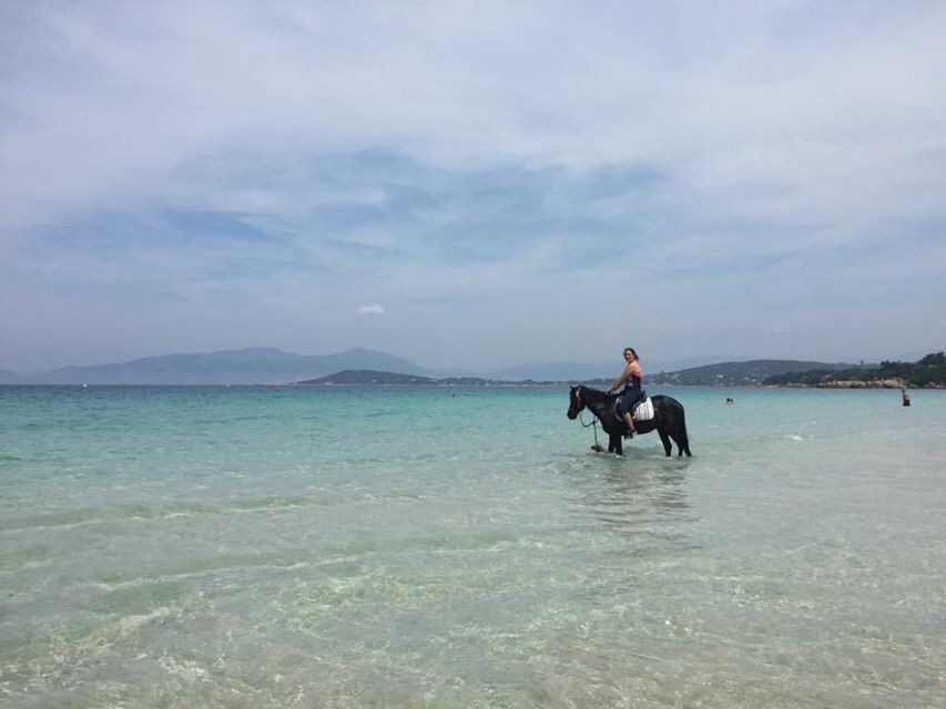 | Dire merci | Bon l'été prochain faut que je motive chéri à partir en corse Je veux la plage paradisiaque à cheval!! Chéri fera la nounou et moi zou balade cheval plage J'adore ton post, le matin il met trop le smile! |