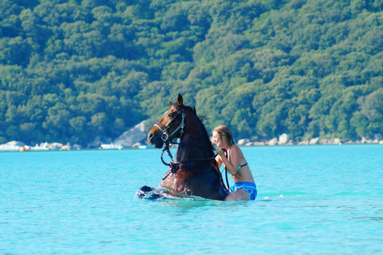 | Dire merci | drina contacte le club A Staffa, il organise des balade baignade avec les chevaux dans un coin superbe.... Je recommande ++ |