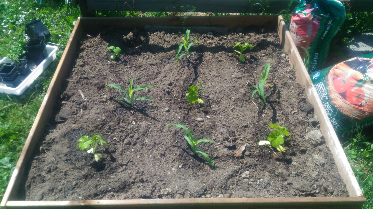 | Dire merci | Ca avance ici aussi ! Quelques photos.. Nouveau carré potager, que j'ai fabriqué avec 4 lames de terrasse. Fière de mon travail ![]() Dedans jai mis : courges pomme d'or, et maïs a pop corn. L'idée etant que les courges ne prennent pas toute la place dans mon petit jardin, donc hop, comme ca elles ont leur espace ! ![]() les tomates, avec entre chaque pied un petit plot de basilic que j'avais semé en godets un peu avant. ![]() le rang de courgettes (dans lequel jai intégré qq fleurs, 1 pop corn qui restait..) ![]() mes epinards qui ont poussé tous seuls, n'importe où (semé l'annee derniere, c'etait pas sorti.. ben c'est sorti maintenant). Donc dans les espaces libres jai mis qq salades, fleurs encore, basilic..Et à gauche encore 1 tomate qui ne rentrait pas dans le rang, et potimarron et butternut. ![]() et jai aussi palissé les framboisiers et mûres.. Maintenant il me reste qq aromatiques a semer, les haricots, patates.. Et desherber mes fraisiers qui sont complètement noyés sous l'herbe.. Pour la question du paillage, j'utilise bien la toile de paillage (l'espece de bache verte sur mes photos), j'en suis bien contente facile a mettre en place et a enlever. Ca limite bien la pousse d'herbe quand meme et ca me fait mes allées. Et ca laisse bien sûr passer l'eau et l'air pour laisser travailler les petites bêtes dessous (c'est pas du tout une bâche étanche)Message édité le 16/05/18 à 10:24 |