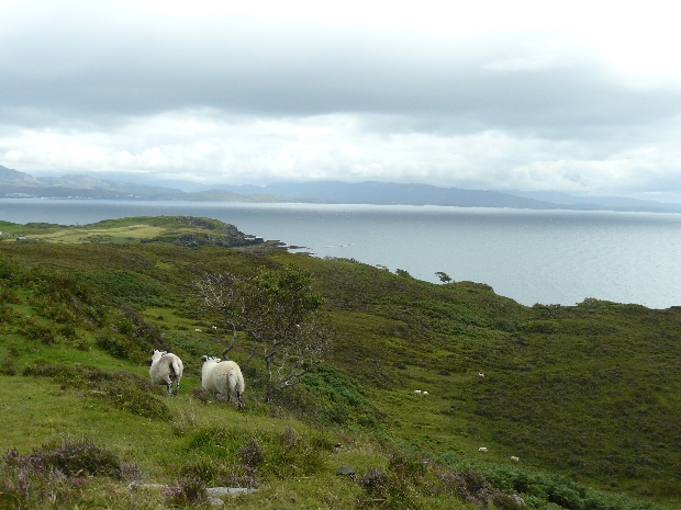 au final oui, mais on etait les derniers clients, et les serveurs commencaient a dresser les tables pour le petit dej le lendemain !). On a crapahute au Old Man of Storr, la vue etait imprenable (malgre le brouillard une fois tout en haut, mais sur le chemin, c'etait wahou). Ensuite on a promene en voiture en s'arretant ici ou la pour profiter (les chemins sont etroits et les moutons ne sont pas clotures dans les champs, donc parfois attendre un peu que la route soit degagee