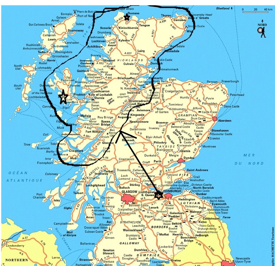 | Dire merci | Non, mais en gros c pas compliqué :tu arrives à Edimburgh et apres , tu tournes ds le sens que tu veux ds le machin en noir:je conseille de monter tt en haut au cap Wrath , parce que là pour le coup ça devient desert de chez desert ![]() Message édité le 19/02/19 à 16:10 |