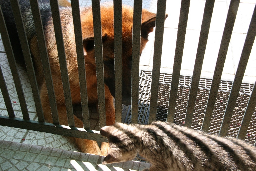 | Dire merci | Je suis actuellement dans cette situation. Obi-Wan a 2 mois, je l'ai depuis 2 semaines et demi. Il est bien trop petit pour s'aventurer dehors, je ne le laisse pas encore sortir. Mais depuis une bonne semaine, en journée quand il y a quelqu'un à la maison, les températures agréables font qu'on peut laisser la porte d'entrée ouverte. Pour éviter qu'il ne sorte, cette entrée dispose également d'une demi-grille (comme une porte de box, en fait), avec des barreaux verticaux suffisamment rapprochés pour que le chaton ne puisse pas passer la tête (au risque de se coincer, ou de s'échapper), par contre, il peut passer les pattes sans problème. Lyca, notre bergère allemande de 3 ans est dehors, et très attirée par ce petit bouchon. Les présentations ont été faites, et ça se passe bien, au début, elle était un peu trop fofolle, elle jappait en le voyant, ou se jetait contre la grille, mais on a mis les points sur les I en institant sur le "pas toucher", "tu laisses !" et elle s'est calmée. Le chaton, de plus, n'est pas peureux, et ne s'est pas trop effrayé de ses manifestations de joie bruyante et brutales. Il n'est pas contraint, et peut facilement battre en retraite, sans que Lyca puisse rentrer. Donc le contact s'est établi en toute sécurité, en notre présence systématique au début, mais depuis hier, on laisse les choses se faire sans nous. J'ai remarqué tout à l'heure que Lyca se couchait sur le paillasson, le nez contre la grille, très calmement, et Obi-Wan joue avec elle, lui met des petits coups de patte sans les griffes, visiblement, c'est ok, quand nous pourrons le laisser sortir, ça devrait bien se passer. C'est important, car il y a un autre chat à la maison, qui est complètement flippé dès qu'il voit Lyca, mais il était déjà adulte quand elle est arrivée, et ils n'ont pas fait connaissance correctement. Lui crachant le feu et se gonflant à peine il la voit, et elle, toute excitée, n'a rien arrangé. Si par malheur elle repère Eastwood sur la terrasse, elle se précipite vers lui, et est confortée dans cette attitude car depuis le début, chaque fois qu'il la voit, il fuit. Sa fuite accentue l'instinct prédateur de la chienne. Dans le même temps, nous avons aussi une chatte, qui elle, vit dehors depuis toujours, et pour qui la terrasse est SA maison. La chatte, Bizness, a su rester calme avec Lyca quand elle était chiotte (on dit comme ça ? ) et du coup, ça se passe très bien toutes les 2, Bizness est plus ou moins devenue le "doudou" de Lyca, qui la cherche en permanence, lui donne de grands coups de langue quand elle la voit, et lui laisse volontiers son matelas quand Bizness a décidé de s'y installer.En fait, le comportement futur dépend vraiment de la première rencontre. |