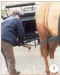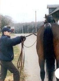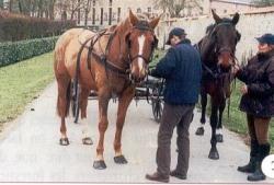 .1- Amener le cheval à la voiture et préfixer les chaînettes.