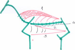 4 : angulaire de l’épaule, extenseur de l’encolure