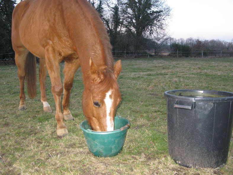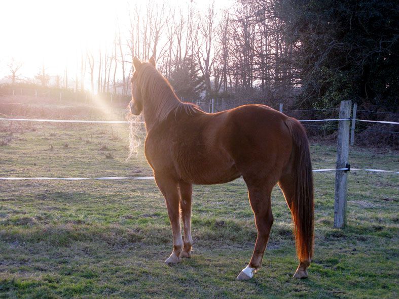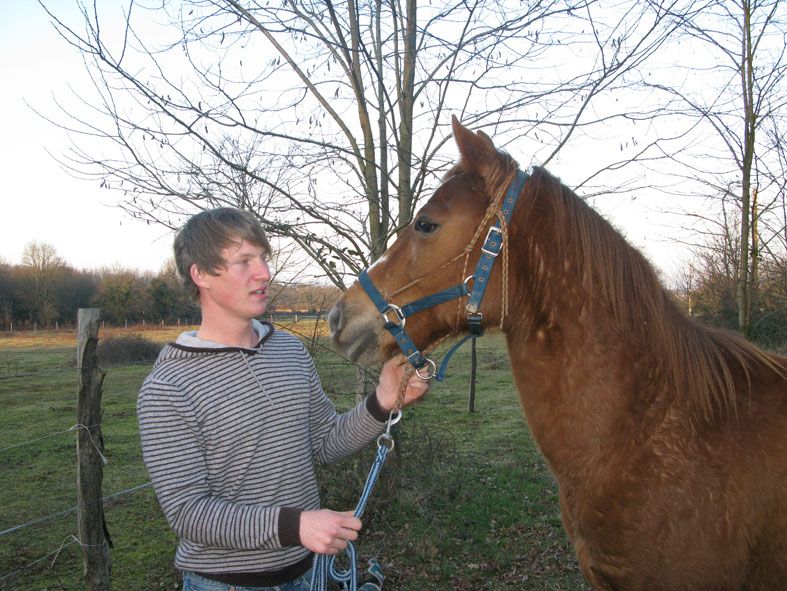 | Dire merci | coucou hola! Bon alors ton beau loulou va toujours très bien, il a l'air de vraiment bien s'adapter et il commence à bien jouer avec les autres! envie de bouger le loulou! On a essayé de le monter un peu (20 minutes) hier, il était assez chaud mais globalement ça a été il y a mis de la bonne volonté! Alors je lui ai expliqué discrètement qu'il fallait qu'il soit gentil pour aller en balade avec ses nouveaux potes et brouter les fossés au printemp! et visiblement il y a des mots qu'il comprend! |