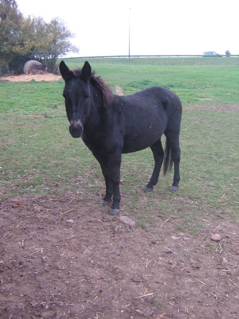 | Dire merci | Ce joli petit bardot a eu la malchance d'atterrir chez un marchand de bestiaux que je ne connais que trop bien malheureusement, de par sa réputation à revendre 99% des animaux qui transitent par chez lui à l'abattoir. Il fait donc partie des infortunés du moment. Juste pour dresser le contexte, comme je le disais ds le post sur le mulet, j'y suis allée aujourd'hui, et j'ai assisté à une vente collective à des arabes de viande directement récupérée de carcasses entreposées ds un camion frigorifique, dans sa cour. Je n'ai pas voulu approcher de trop près, de peur de voir des trucs que je n'aurais pas du voir. Enfin bref je parle de ça seulement pour faire comprendre que tous les animaux qui passent par chez lui sont en réel danger... Pour en revenir à ce loulou, il est jeune, mais difficile d'estimer son âge (biensur le marchand n'en sait rien). Je dirais aux alentours de 5 ans... Il est entier. Zut, je n'ai pas pensé à demander s'il était débourré, mais ça m'étonnerait. Il en veut 400€, mais comme pour tous les animaux qu'il récupère, c'est tout à fait négociable... Il n'est pas trop chou??? Allez vite sortez le de là!!! Place aux photos... ![]() ![]() ![]() |