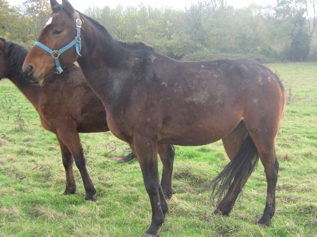 | Dire merci | Toujours chez le même marchand (voir post intitulé « urgent : plusieurs ânes à sauver »), 3 chevaux sont en situation très critique. La première est une double ponette, de type camargue. Elle a environ 15 ans. Montable, mais le marchand m’a fait comprendre qu’il ne fallait pas trop s’attendre à un bon cheval de selle, et plutôt la prendre pour tenir compagnie à un autre cheval… Elle semble assez craintive. Le marchand m’a clairement dit qu’elle finirait à la boucherie si personne ne la prenait. Elle est vendue 450€. ![]() ![]() ![]() ![]() Les deux autres loulous, j’ai failli ne pas les voir. Le marchand ne m’en avait pas parlé, partant du principe qu’ils n’attireraient de toute façon personne, puisqu’ils ont des problèmes tous les 2. Malgré tout je veux croire qu’ils ont leur chance, et que quelqu’un acceptera de leur donner tout l’amour qu’ils méritent. Je suis donc retournée les prendre en photo, et j’espère de tout cœur qu’ils intéresseront quelqu’un, car leur sort est plus que compromis. Le premier est un double poney bai d’environ 3 ans (hongre). Il est un peu typé arabe. Il a une très jolie tête, et des yeux particulièrement expressifs. Il mesure environ 1,40m au garrot. Un peu craintif, mais dés que je me suis accroupie devant lui, la curiosité l’a emporté et il s’est ensuite laissé caresser. Je ne sais pas ce qu’il a exactement, et le marchand l’ignore également. Il se déplace avec difficulté. Peut-être fourbu. Honnêtement je n’en sais rien du tout. Non montable en tout cas. Il est à vendre 450€. ![]() ![]() ![]() Quant à son copain d’infortune, il s’agit d’un trotteur de 4-5 ans d’après le marchand. Mais je trouve qu’il a une bouille de bébé, alors il est peut-être plus jeune. Il mesure environ 1,55m au garrot. C’est également un hongre. Il était monté, mais a un problème au postérieur droit, qui est très enflé, principalement jusqu’au boulet. Le marchand biensur ne sait pas ce qu’il a, il m’a dit l’avoir mis au pré en se disant que le fait de marcher l’aiderait peut-être à se désengorger. Sans commentaires… Il est à vendre 650€. Ce loulou m’a vraiment fait craquer, car il est d’une douceur incroyable… ![]() ![]() ![]() ![]() ![]() ![]() Contrairement aux ânes du précédent post, je pense que les prix indiqués ici sont bel et bien des prix boucherie, d’autant plus qu’il y a sans doute moyen de négocier un peu. Mais je ne sais pas combien de temps il compte les garder avant de les expédier à l’abattoir. Alors vite, svp, il faut les sortir de là !!! |