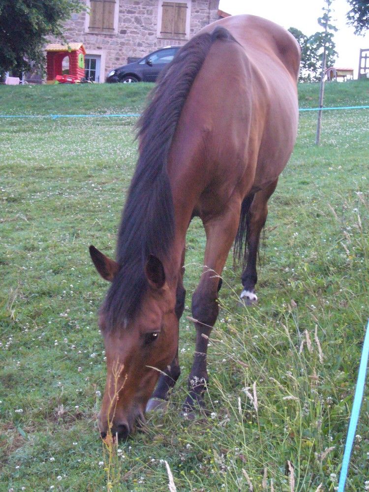 | Dire merci | Coucou! Voilà un petit post pour montrer qu'on a raison de s'entêter et qu'au bout de nos efforts il y a la récompense géniale de voir un de nos protégés s'en sortir et couler une fin de vie paisible largement méritée! Des nouvelles donc d'une jument que j'ai pu sauvée grâce à de nombreux forumeurs, pour nous redonner un p'tit coup de pouce au moral qui en prend parfois un coup quand on tombe sur certains specimen peu scrupuleux du genre humain. Petite devinette! 1 - Je suis une grande perche! 2 - Je suis une joli bai 3 - Je suis une selle française Z'avez trouvé? Eh eh, il s'agit de la miss... Gaby! (de son nom complet Gaby du Morion) Nous l'avons sauvée il y a de ça près de 3 ans, en collaboration avec plusieurs forums puis je l'ai placée en famille d'accueil ou tout se passe très bien, la miss a plusieurs hectars de prairie pour gambader à sa guise et un nouveau copain TF lui aussi sauvé après qu'ils aient perdu Sucette, une vieille ponette qu'ils ont sauvée mais qui malheureusement n'a profité que quelques mois de sa douce fin de vie au pré. Pour Gaby ça va bien, elle maigrit un peu à cause de l'hivers, on a toujours eu du mal à la maintenir niveau poids avec le froid mais ils font le nécessaire en attendant le printemps ou en général elle double de volume Son antérieur est un peu raide (ancienne fracture naviculaire), il y a surement un peu d'arthrose qui s'est mis dessus mais le véto vient la semaine prochaine avec le maréchal pour voir ça. Voilà donc des photos de la belle avec son pote: ![]() ![]() ![]() |