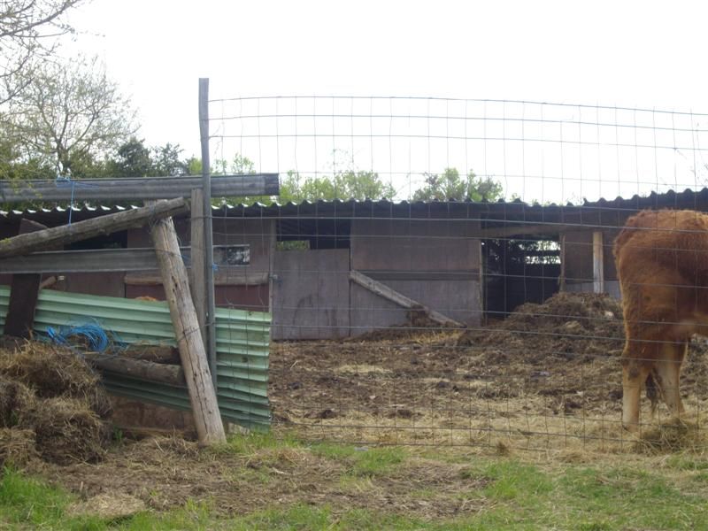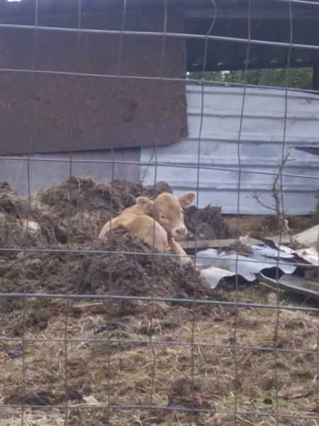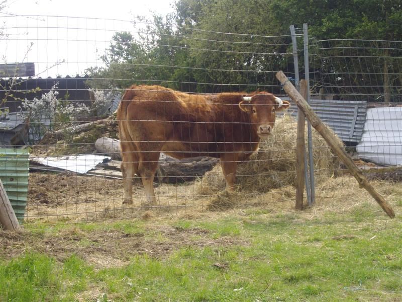 ... dans ce qui devrait être un "pré" il y a 4 vaches dont 1 veau... et 2-3 chevaux sont enfermés dans un box