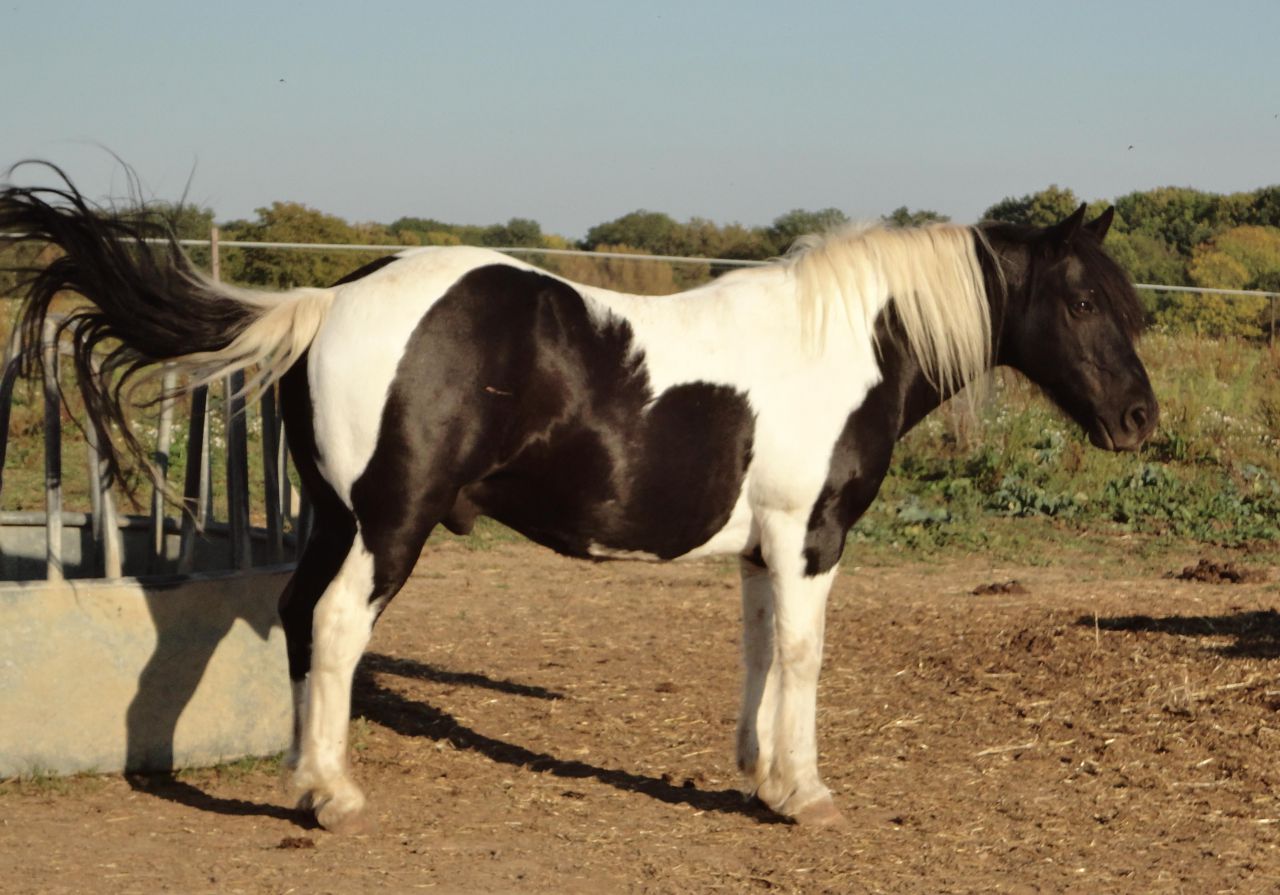| Dire merci | Bobby, bel hongre pie noir aux yeux marron clair qui prend 23 ans est à confier pour une retraite bien méritée (nous faisons encore des balades au pas mais on sent que ça devient difficile pour lui). Rustique, sociable avec ses congénères, il serait idéal pour une vie au pré à l’année pour tenir compagnie à des chevaux de tout âge et sexe. Papiers d’identification, vaccins, vermifuges et parages sont à jour (depuis peu car nous l'avons récupérer il y a quelques mois et pour des raisons financières nous souhaitons le placer sous certaines conditions !!) Pas sérieux ou personne ne pouvant pas lui offrir une vraie pâture avec de la compagnie d’autres équidés s’abstenir (il sort déjà de plus de 10 ans de vie dans une pâture sans compagnie (enfin avec un bélier...) Alors présence d'autres chevaux OBLIGATOIRE !! Il est visible dans le 77 et des photos sont disponibles par mail |