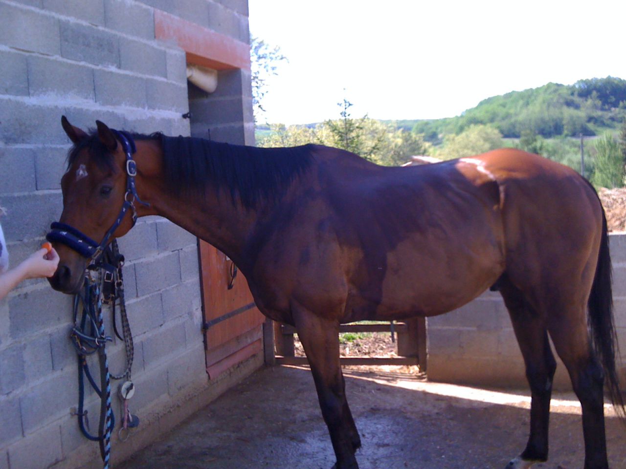 | Dire merci | Une connaissance a voulu faire une bonne action en sauvant un cheval destiné au couteau. Elle a récuperé Just dans l'intention de faire du loisir avec, apres quelques tentatives infructueuses, il s'avere que le cheval est inmontable, il a de l'arthrose notemment au dos. Elle s'en debarrasse donc brutalement, bref il atterit chez moi. Je ne peux financierement pas assumer un cheval de plus, je lui cherche donc une famille. Il est a donner contre bons soins, et je garderai la carte de proprietaire aussi longtemps qu'il le faudra avant d'etre sure qu'il est entre de bonnes mains. Il ne necessite aucun soin particulier, si ce n'est une ferrure car meme au pré il ne peut pas marcher pied nus du tout. Donc je recapitule : -pur sang hongre 9 ans -vacciné, pucé bien sur, -adorable et tres calin avec l'homme, dominé avec congeneres, -vit au pré, mais necessite d'etre couvert l'hiver, -à confier POUR COMPAGNIE (je ne veux pas qu'il soit seul), INMONTABLE, -pour personne responsable qui connait ces chevaux, -à placer dans le lot et garonne ou vraiment limitrophe car j'aimerai quelques nouvelles de temps en temps Merci pour lui [url=https://www.1cheval.com/membre/services/photos/images/136967.jpg] ![]() [/url] [url=https://www.1cheval.com/membre/services/photos/images/136966.jpg] ![]() [/url] |