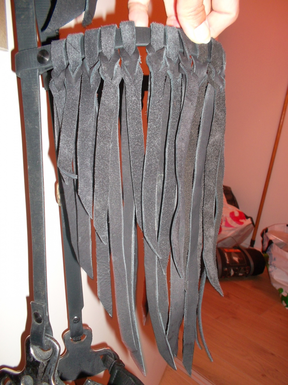 | Dire merci | bon... je fais des photos demain... j'ai fini une entrave cuir doublée neoprene... et j'ai plus qu'a decouper a la bonne taille ma croupiere croisée (deux points d'attache a l'arrière de la selle...) mercy papyrus pour le cuir.... il donne super bien!! question, j'ai un petit couteau laguiole, qu'est ce que je pourrais faire de tres simple et efficace comme etui pour le mettre a la ceinture? qui ferme bien mais sans truc compliqué a coudre, pas de pression non plus... |