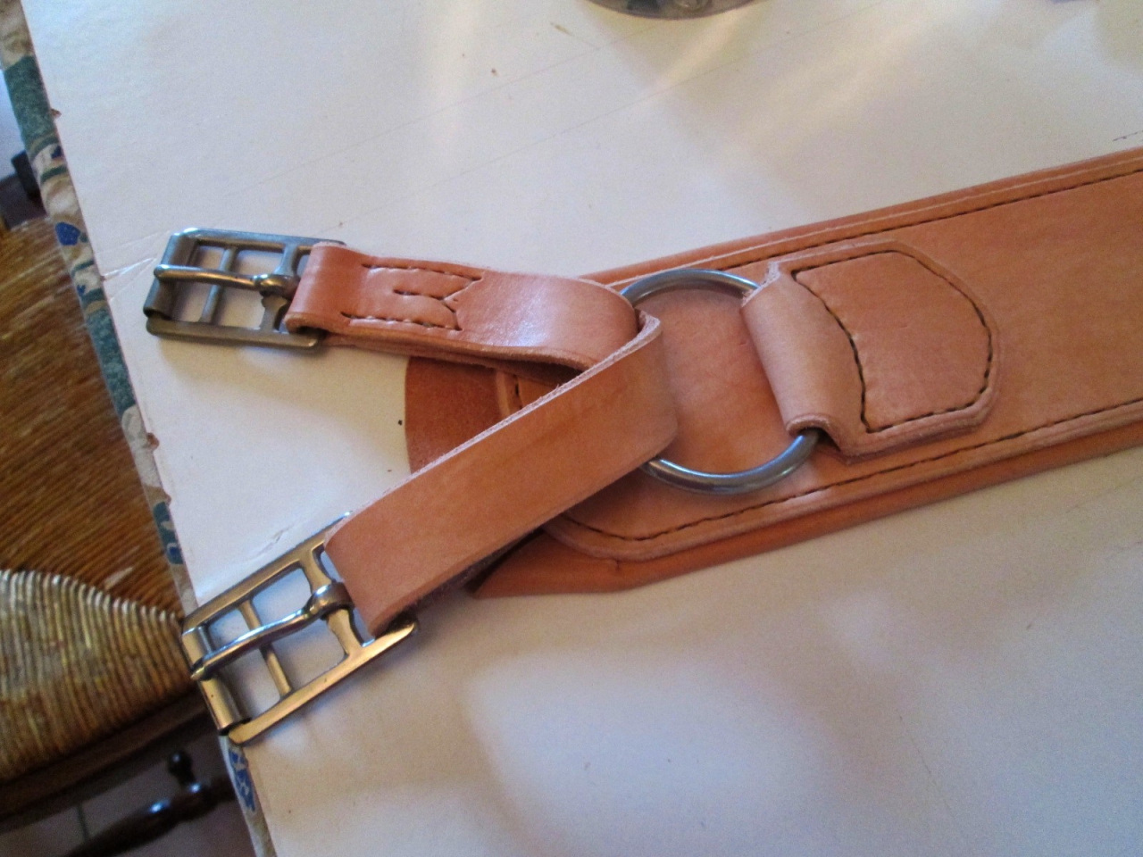 | Dire merci | Très beau, j'adore le cuir non teinté! De mon côté je commence à faire la couture de ma ceinture. Et franchemnet, ce n'est pas droit du tout! Du moins au début de la ceinture on voit clairement une différence. Je commence seulement à aller droit. |