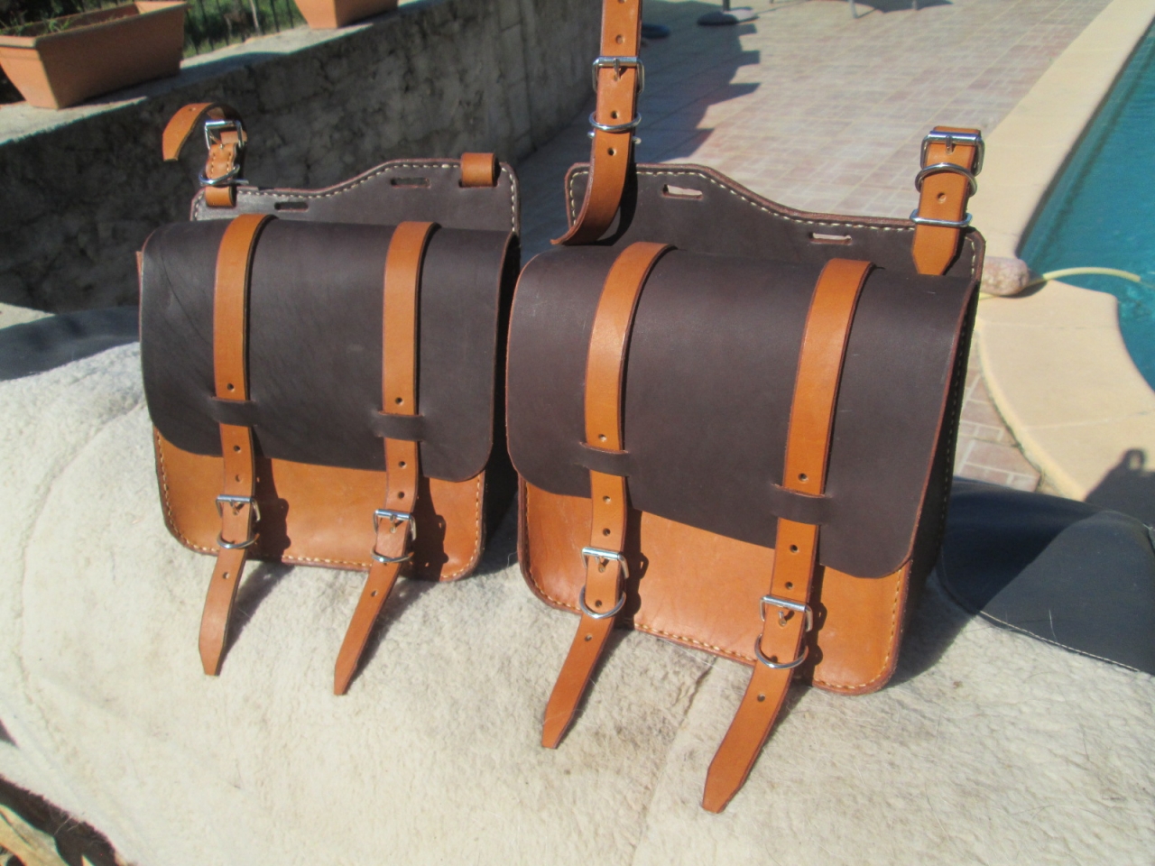 | Dire merci | Une commande pour une selle Australienne…Des sacoches bicolore havane et miel ![]() ![]() Et une poignée de monte pour moi… ![]() ![]() Bien pratique!... |