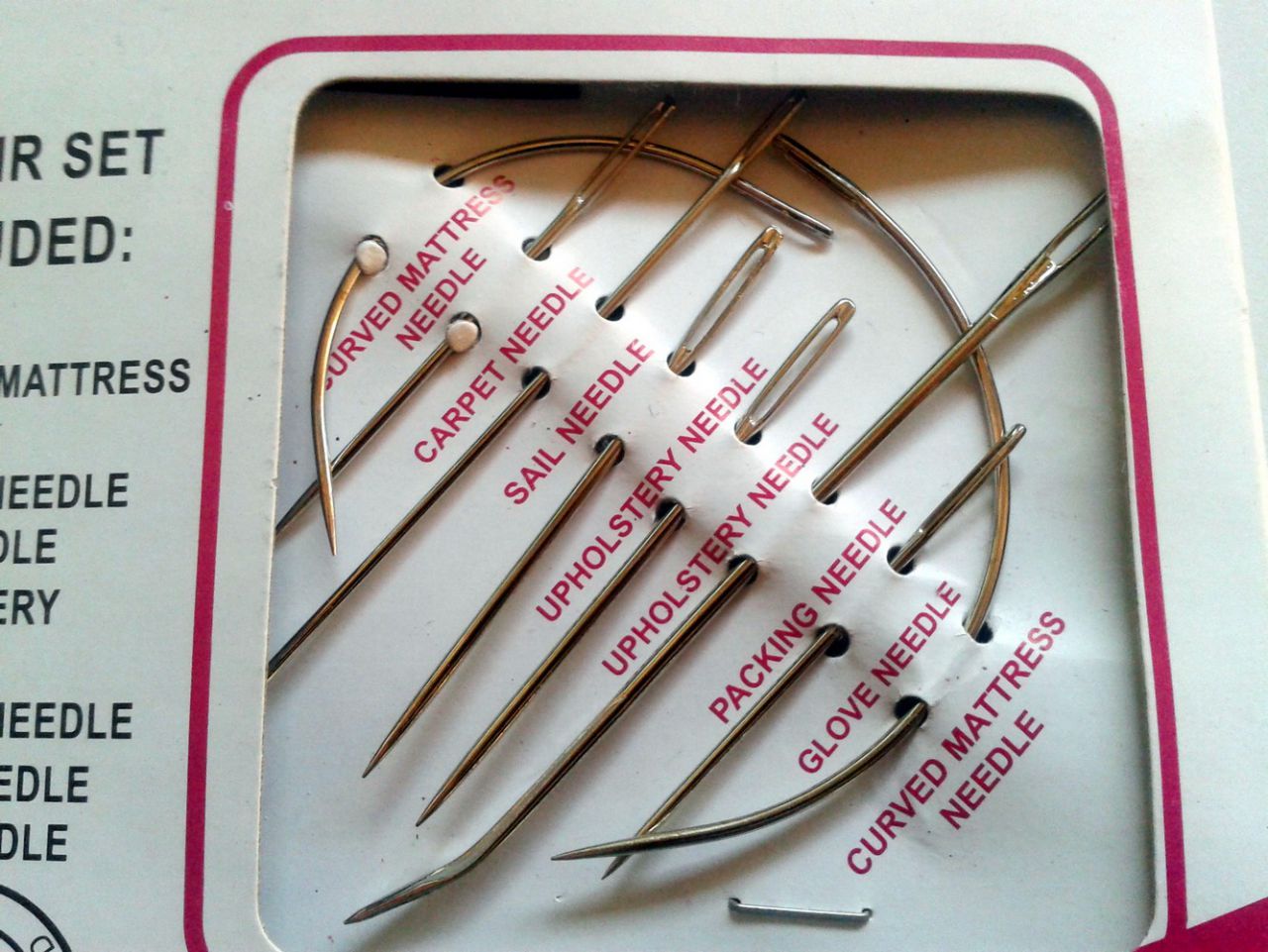 | Dire merci | Un coup, pour rire je vous fait une photo de mes grosses aiguilles...taille mamouth! ![]() Je me demande si j'en aurai besoin un jour.... Pour les lacets, il existe des "aiguilles passe lacet" bien pratique.j'ai perdue les miennes mais je pense que sur e-bay on doit pouvoir en trouver... |