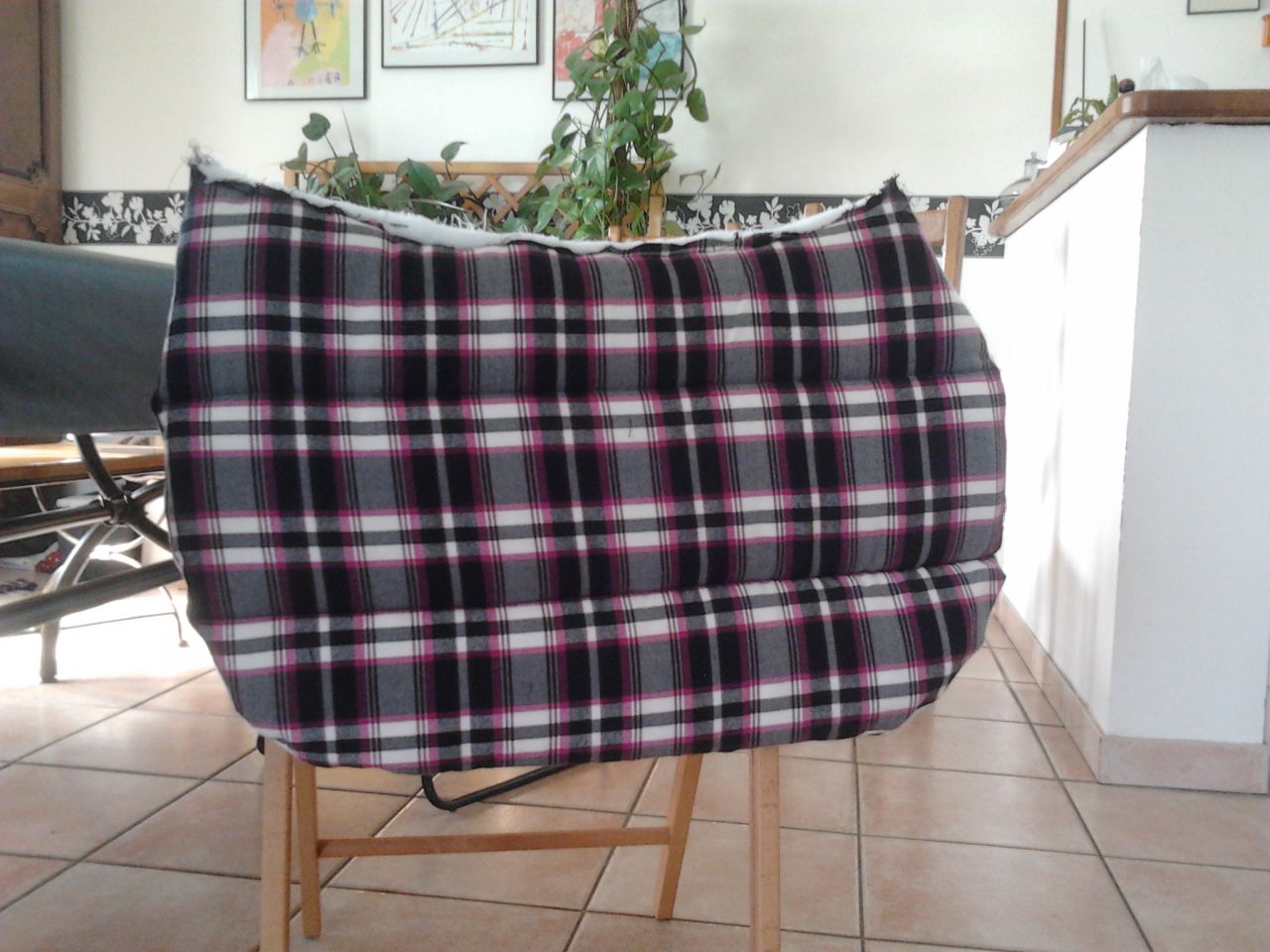 | Dire merci | En fait, ma mere a eu une super idée ! on a découper le moltonnage (une mousse mais je sais pas trop comment ça s'appelle :/) pour qu'il ai la forme du tapis . on a découpé les 2cotés. en suite on a découpé les quatre miorceaux de tissus (les 2 a carreau et les 2 blanc pour le dessous). Apres on a cousu a la machine sans mettre les mousse dedans (comme les taies d'oreiller) on a mis les mousses dedans et on a cousu les surpiqures sans pour autant fermer le coté "ouvert" pour pas que ça fasse de plis, on l'a fermer vraiment a la fin. Quand on a eu fini de faire les surpiqures sur les deux cotés on les a cousus ensemble par la tranche, ce sera plus facile pour mettre le biais ![]() Bon, c'est pas très clair, si tu n'as pas compris dit le moi je te reexplique ![]() |