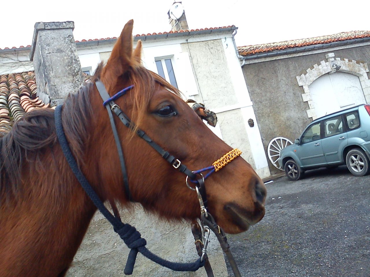 | Dire merci | lol oui les alezans toutes les couleurs flash : rouge, jaune, rose, vert pomme ça pète sur eux !!! maintenant je gère le tissus mais moi tu me fais rever avec le cuir !! lol Si jme lance en Western avec mon gros, j'aimerais trop me faire une bride maison !!! lol |