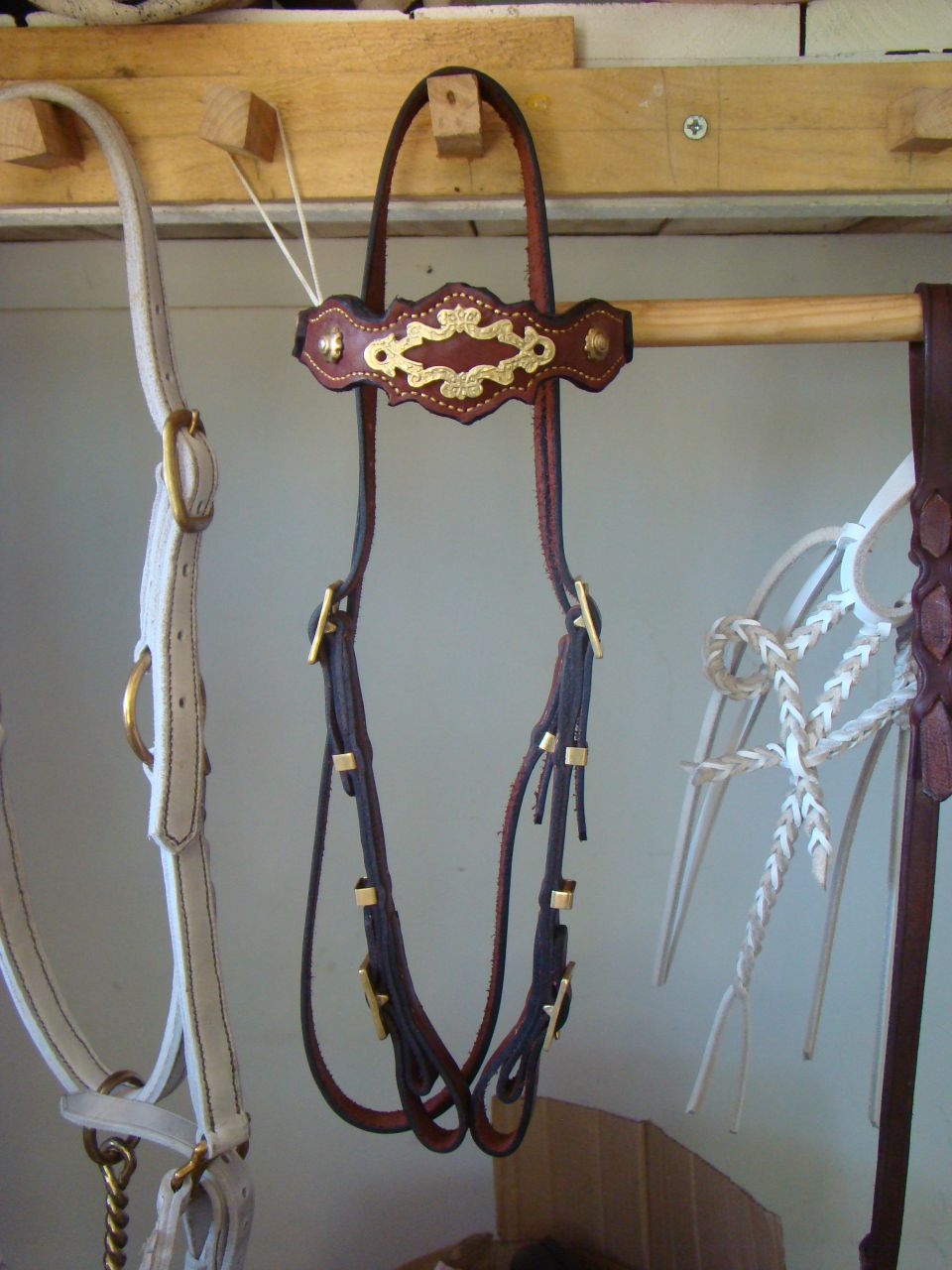 | Dire merci | Mon dernier Manque la muserolle, mais pour vous donner une idée, ça sera la même chose que le frontal ![]() ![]() Pas encore fini, Il va passer à la cire d'abeille sur les tranches et que ça frotte pour faire briller ! |