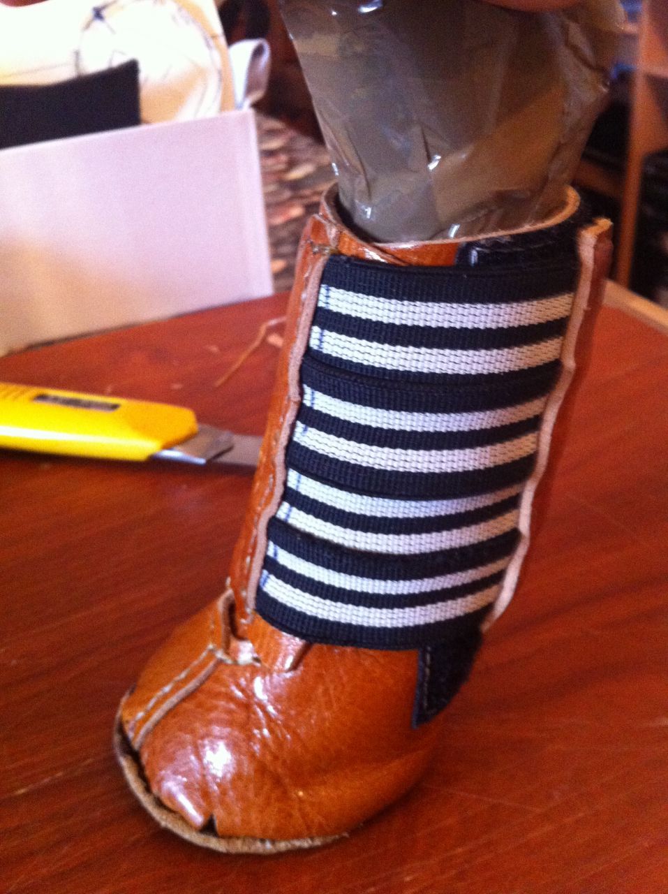 | Dire merci | Merci! Le chien ne tiens plus ses "doigts" de la patte suite a un accident avec un sanglier qui lui a sectionné le nerf sciatique.Les doigts frottent au sol et il se fait mal. Le but étant de tenir au mieux la patte a 45° (comme posée au sol) pour qu'il puisse sortir se balader sans se faire mal... J'ai eue du mal a "démarrer" le prototype,puis j'ai pensé aux guêtres des chevaux...et voilà le résultat (pas final) ![]() Je ne gagne rien a faire ça, si ce n'est aider le chien,mais son maitre (chasseur) y est très attaché...ça méritait que je me penche sur son problème. |