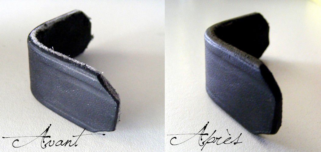 | Dire merci | HEEEEELP à toutes les amatrices de cuir !!! J'ai récupéré des lanières de cuir tanné chrome pour faire des passants de frontaux. Sauf que ce cuir est HYPER rigide et surtout pas beau du tout sur les côtés. Avez vous des astuces pour l'assouplir et rendre les côtés lisses ?? Voilà la photo: ![]() |