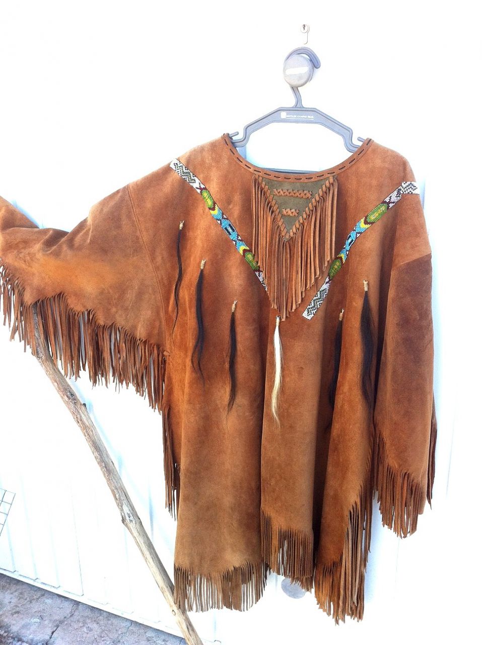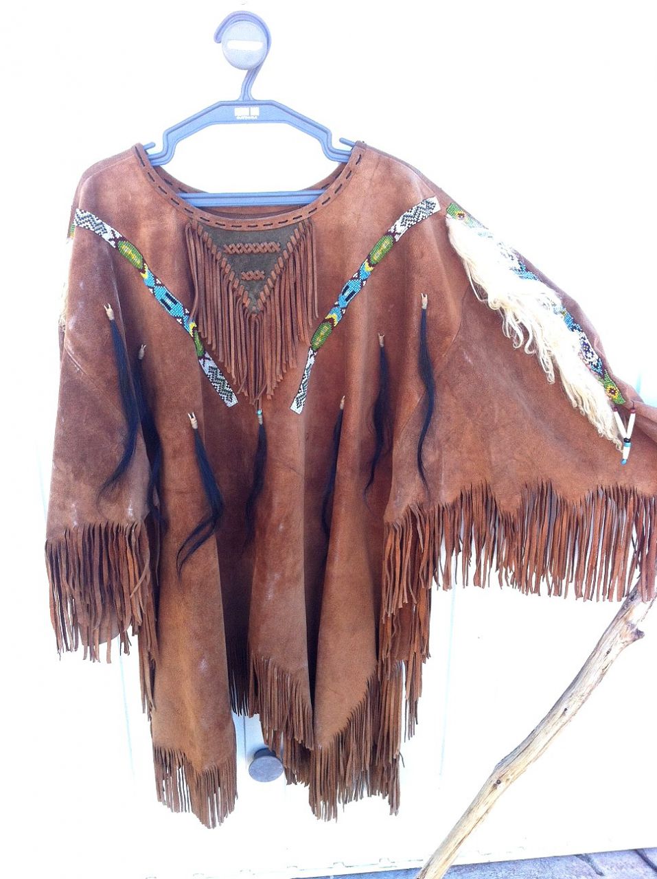 | Dire merci | Une de mes creations (il y a 20ans de ça quand-même) que je viens de récuperer:![]() Cuir peau de porc,perles de verre, crins de cheval,os et poils de chèvre,elle a servi pour des spéctacles Amerindiens ![]() |