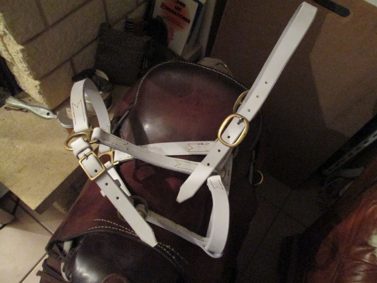 | Dire merci | Licol en cuir chromé a partir de boucleries d'un vieux licol foutu... ![]() |