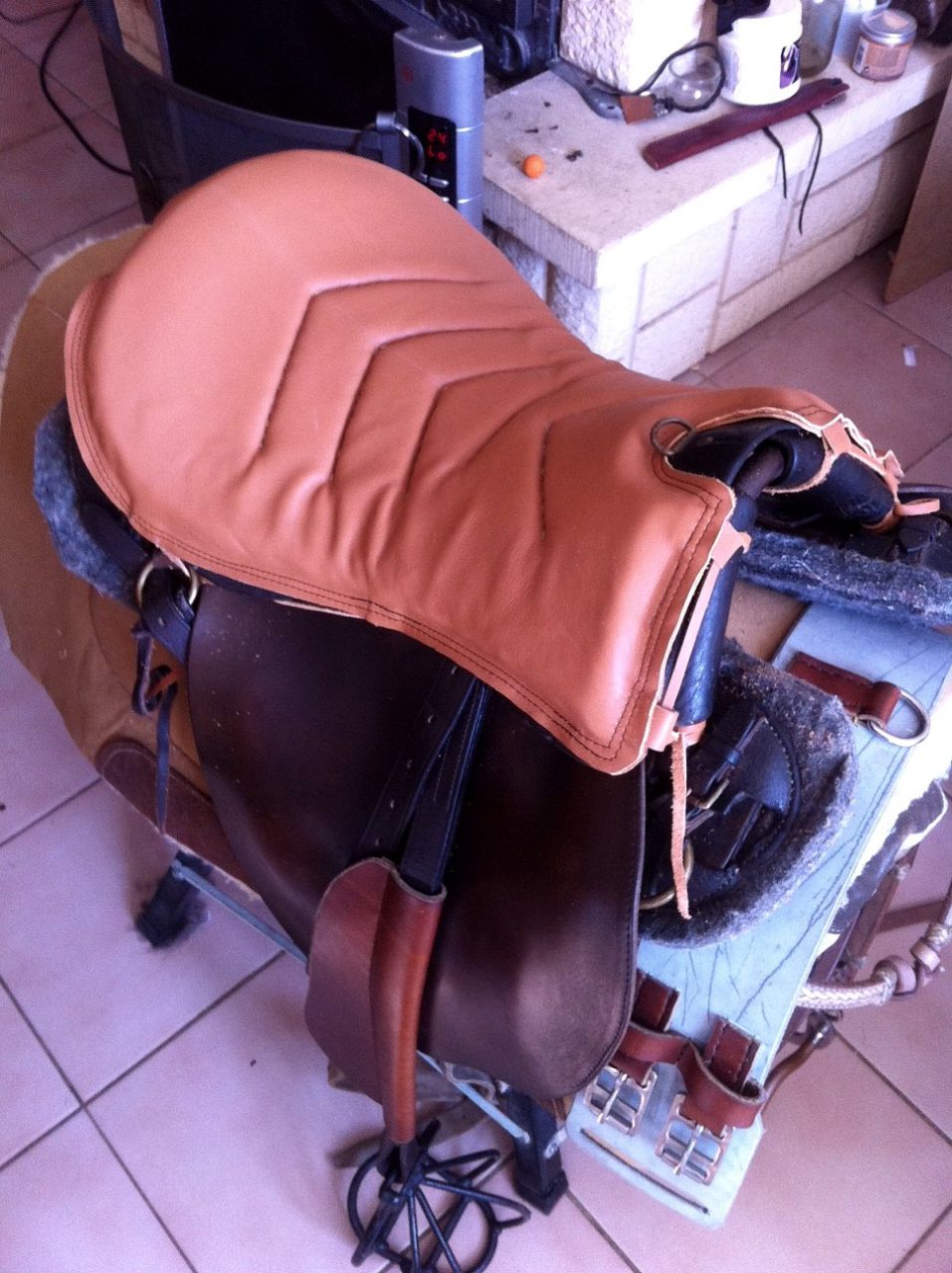 | Dire merci | Pour le confort de mon popotin ![]() ![]() Une mousse d'amortisseur grande taille (décath) recouverte de cuir de veau très souple! Le tout maintenu par un lacet de cuir ![]() |