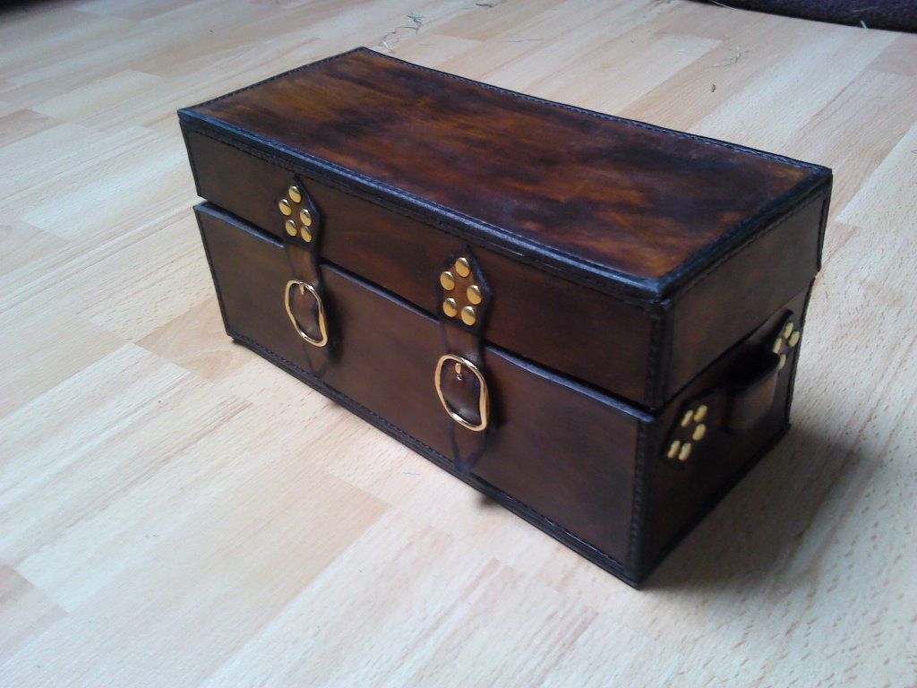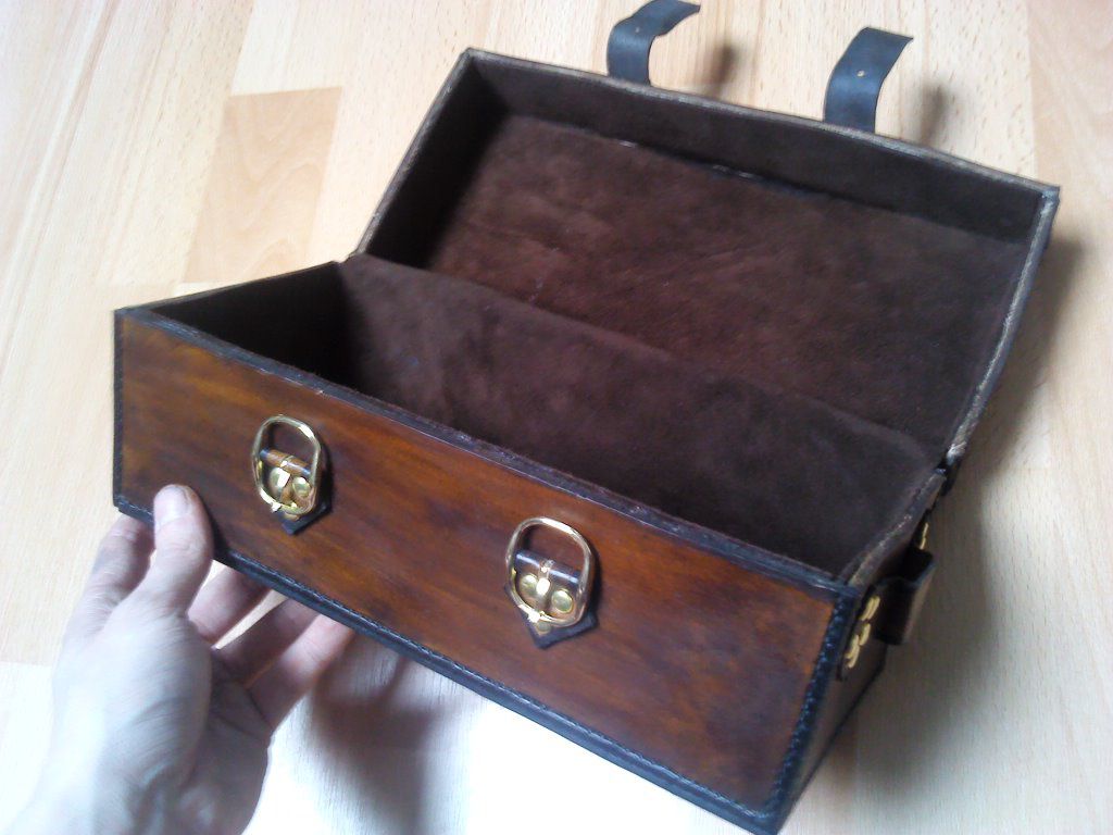 | Dire merci | Ah oui en effet celui du cours je n'avais carrement pas fait attention le prof n'a trop rien dit puisque c'était pour s'entrainer ![]() Pour la boite heu ca va etre difficile de tout expliquer, c'est assez complexe a faire, du moins pour faire comprendre par ecrit ; En gros, pour les outils NECESSAIRE (car j'ai pas été au plus simple...) : - Cuir epaisseur 3mm ou plus suffisamment rigide (ici du collet vegetal naturel) - strap cutter (sert a decouper des bandes de cuir) - Compas (pour tracer la ligne de couture ET marquer les distances des points) - abbat care (pour ''casser'' le tranchant des bords apparant) - un alène Pour la conception : (ceux qui ont plus de mal a visualiser, un patron en carton est indispenssable) - je fait un schemas precis de ma boite, de comment je souhaite assembler mes bords - je complete en dessous en ecrivant mes mesures (tenir compte de l'epaisseur du cuir pour pas mal de choses) - utiliser l'abbat care et le compas en concequence (en fonction de l'assemblage certain bords doivent rester brut) - tout ce qui est fermeture, accessoires etc doit etre fixé avant assemblage de la boite - Pré marquer tout les trous et TOUT pré-percer, il y a deux inclinaison d'alène a donner en fonction de quel bord est apparent ou non Voila pour les grosses étapes, je ne peux pas réellement tout détailler, il y a trop d'étapes ! |