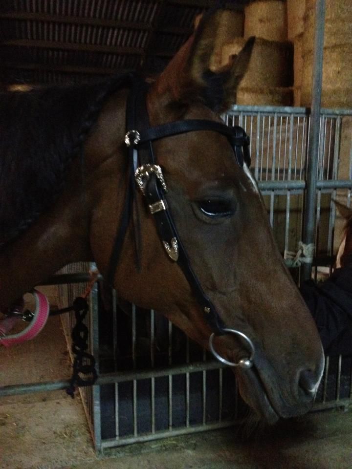 | Dire merci | Je sais pas si c'est l'angle de la photo, mais la muserolle me semble un doigt haute. Je trouve que ça fait un peu "petit" sur cette tête, qui du coup à l'aire (est?) grosse ^^ C'est quoi ta largeur la? |