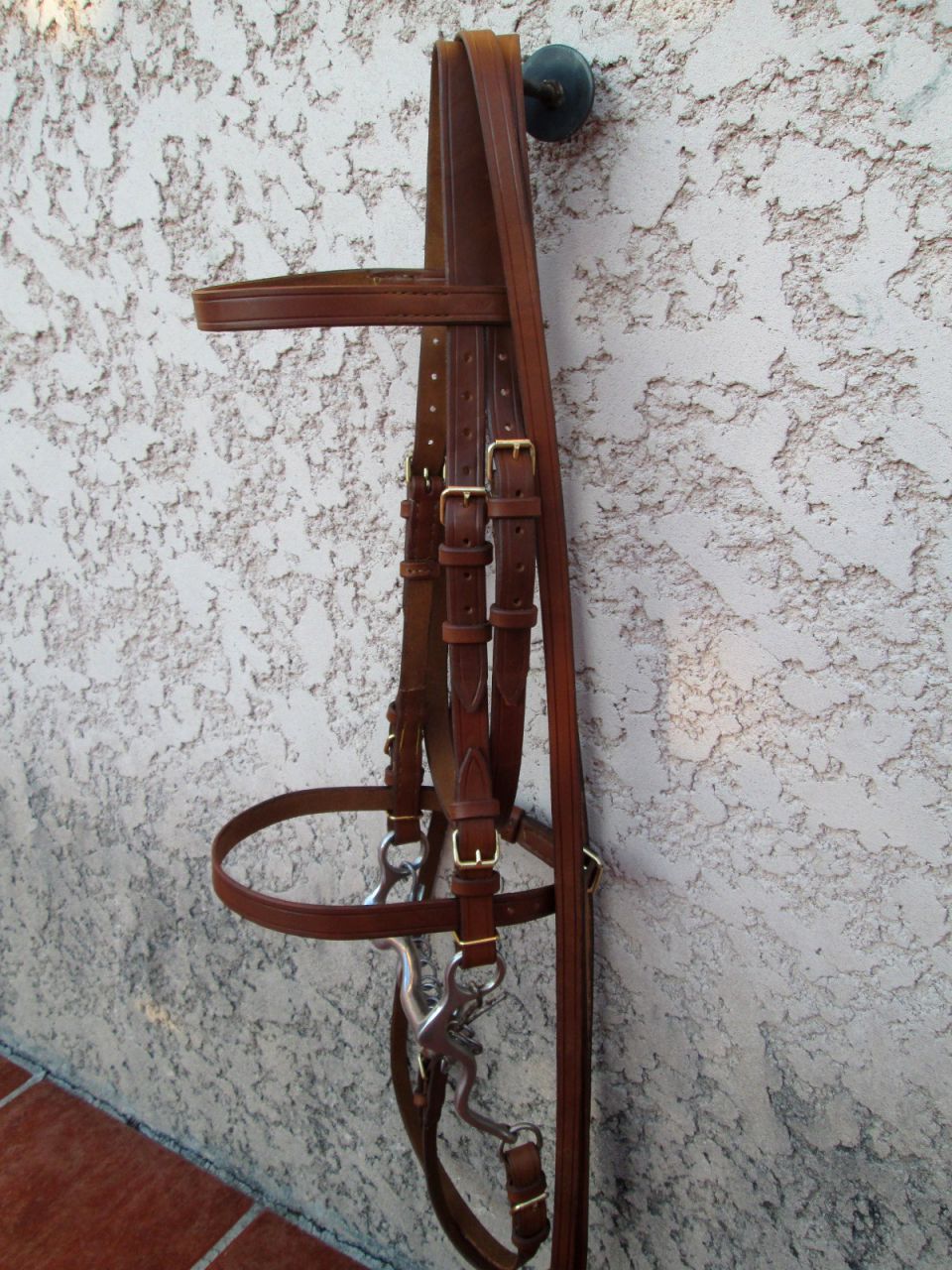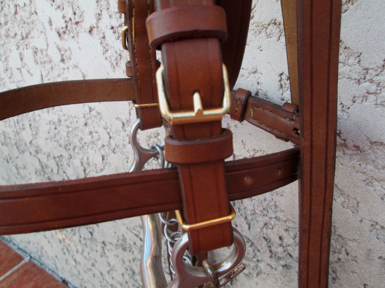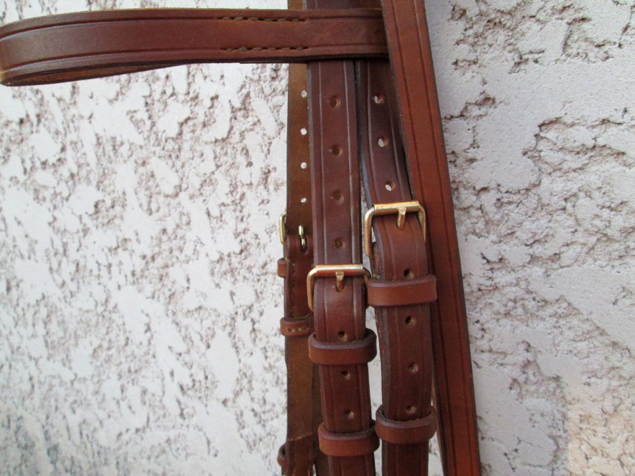 | Dire merci | sur un bridon comme ça c'est surtout bcp de préparation et de finition, peu de coutures ![]() question ; tu n'as pas fait trop de trous aux montants ? au plus court le dessus de tête se superpose à la boucle du montant du mors ce qui ne sera pas très esthétique |