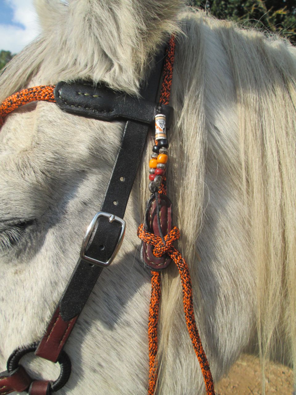 | Dire merci | Très jolis vos side! à mon tour de montrer mon dernier bricolage: un bridon spécial hack pour mon loulou: ![]() ça lui va très bien comme style je trouve |