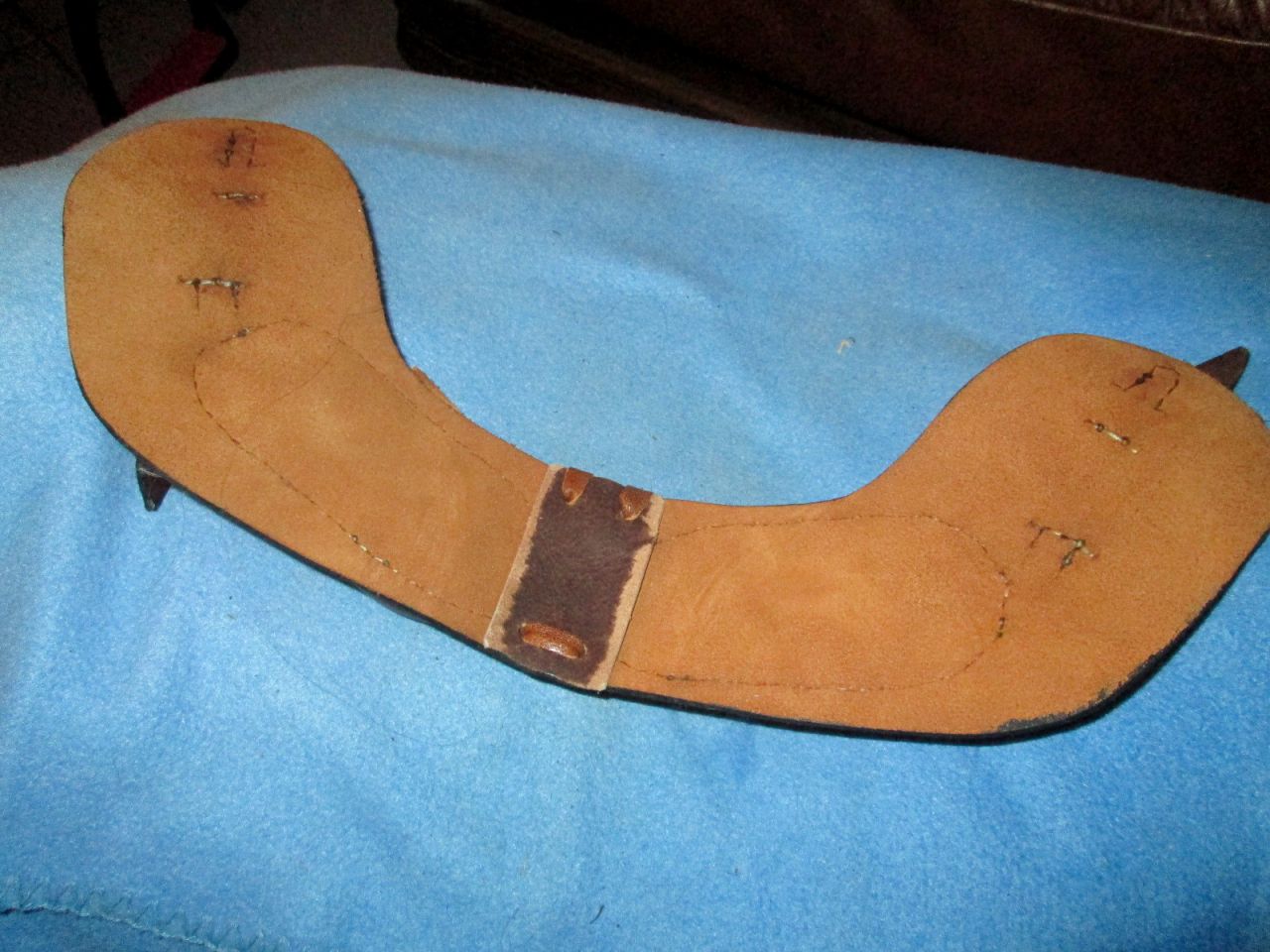 DéconnectéDire merci | Chouette ! Quelqu'un pourrait-il me dire ce que je dois faire pour plier du cuir façon portefeuille ? c'est du cuir fin pour réaliser un culeron de croupière comme les Guichard : Ce que je voudrais c'est plier et marquer le pli ! Merci ! |