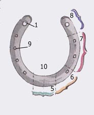 | moi j ai une formation marechalerie je peux te renseigne soit tu mais des mortaise soit tu as des cloux expres avec une boule aux niveau de la tete du cloux mais je pense c'est pour l usur du fer |